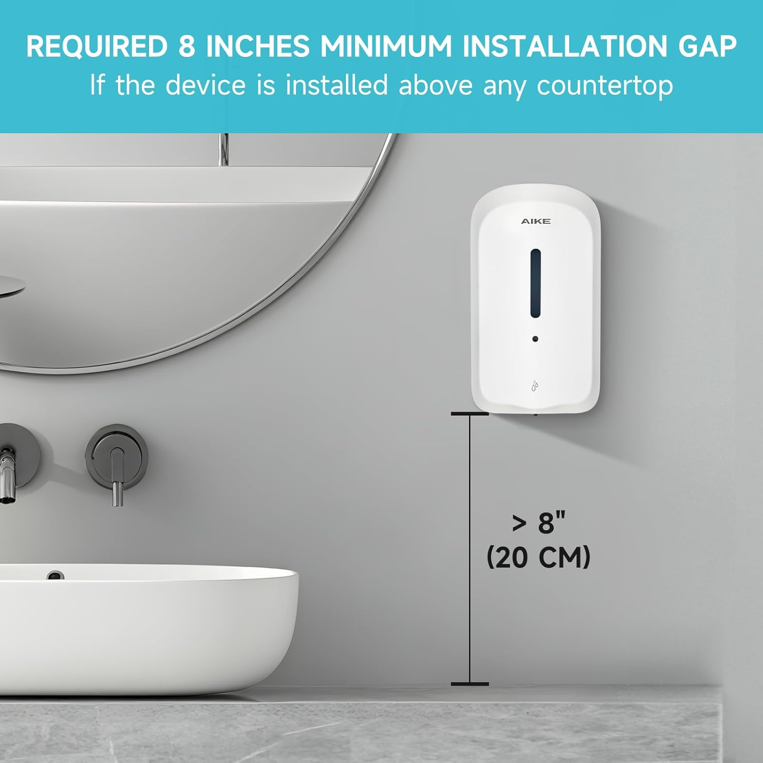 AIKE 33.8oz Automatic Wall Mount Liquid Soap Dispenser with Commercial ABS Construction, Model AK1226S(White)
