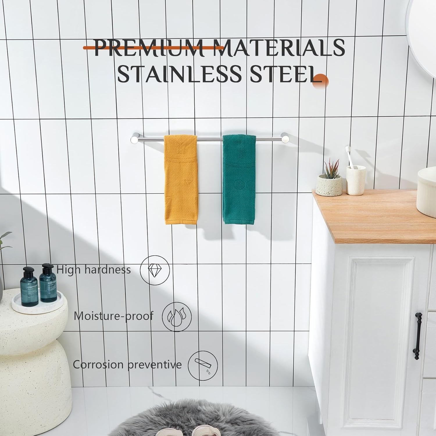 - ◄ ALL STAINLESS STEEL ► KOKOSIRI towel bar is made of T-304 Stainless Steel (premium steel). All stainless steel constructure which can resist rust and corrosion. For your health, all the materials we use are the highest quality and harmless. You can rest assured to use all of our products