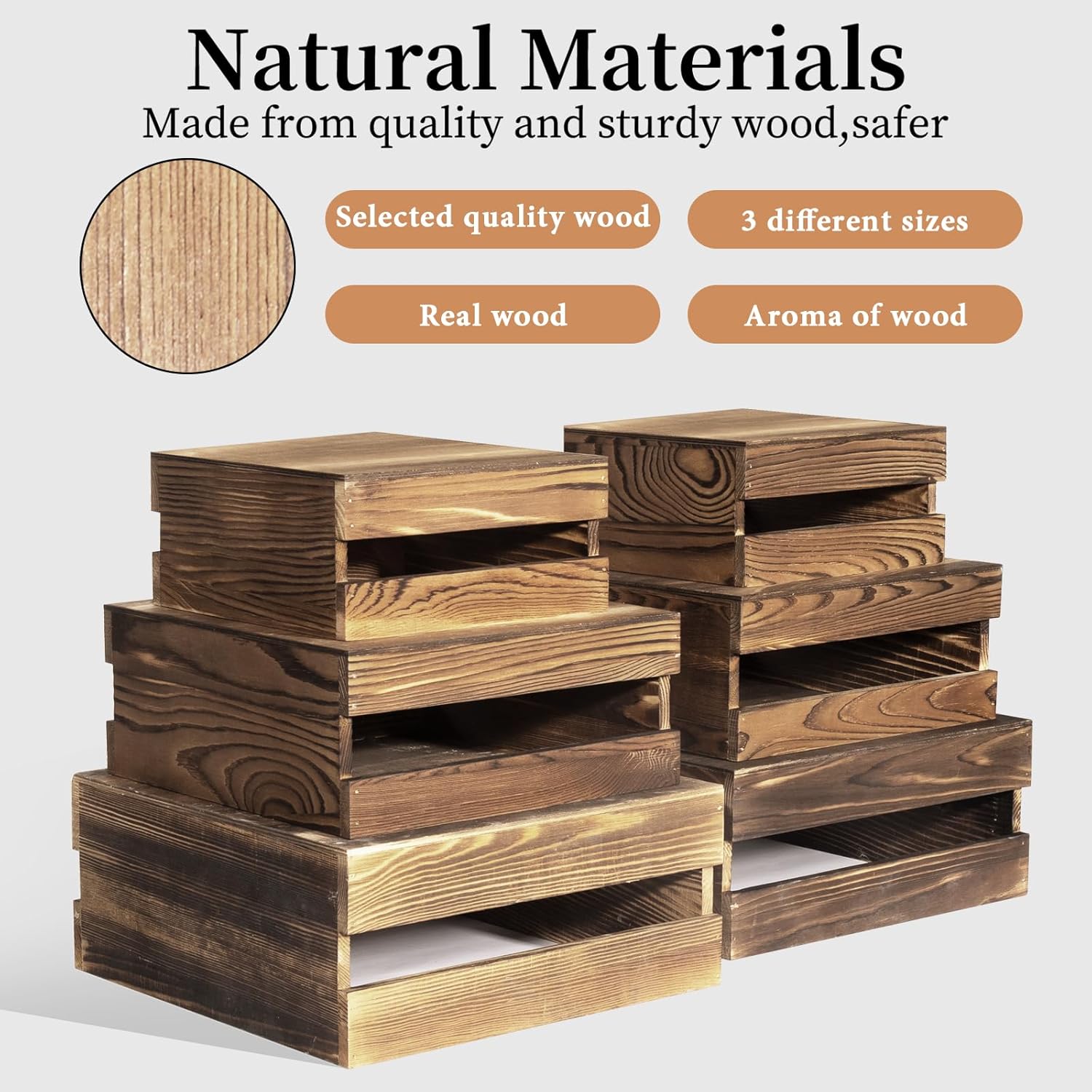 - Versatile Sizes for Layered Elegance: Our wooden stackable display boxes are carefully sized for multi-layer display, Large: 8.0x8.0x4.6 inches; Medium: 7.0x7.0x4.0 inches; Small: 6.5x6.5x3.5 inches, create stunning visual tiers and levels of display space that captivate every guest