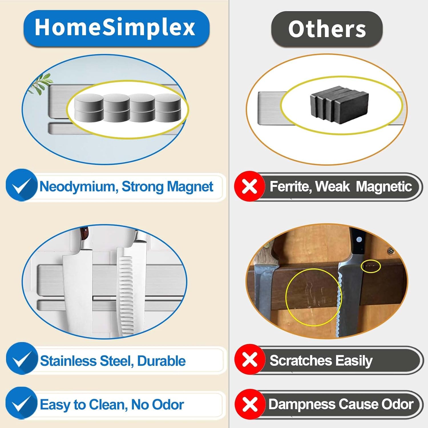 - 【Strong Magnetic Hold】Our kitchen knife magnetic strip for knives is crafted from high-quality 304 stainless steel and is equipped with neodymium bar magnets, ensuring a strong magnetic hold. Experience enduring performance without concerns of rusting or diminishing magnetism