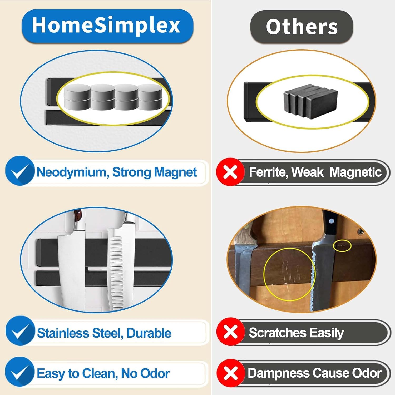 - 【Scratch-Resistant Black Finish & Powerful Magnets】Our kitchen knife magnetic strip for knives features a premium scratch-resistant black surface that maintains its sleek look. The integrated neodymium bar magnets to securely hold heavy items without weakening or rusting