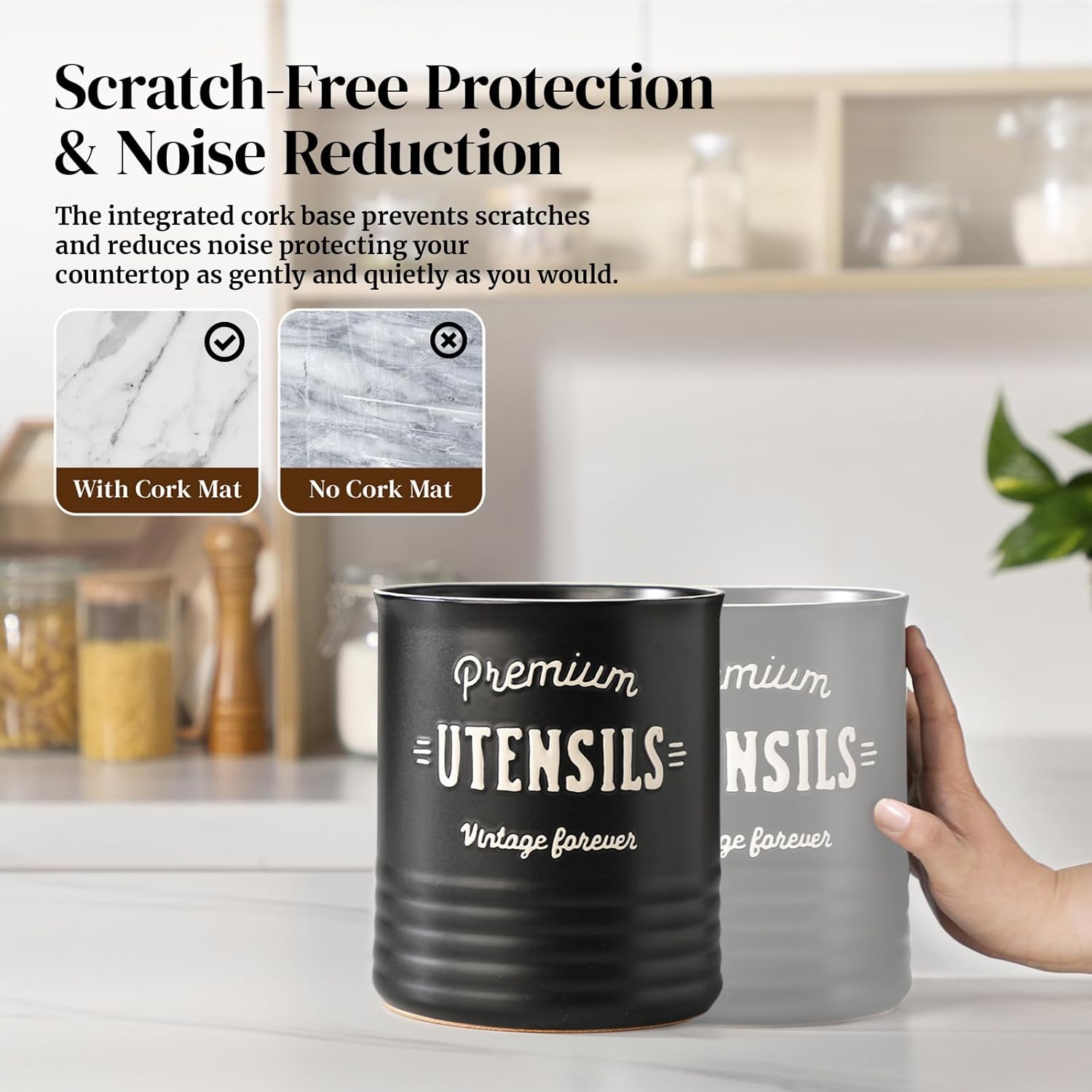 - Counter Protection Cork Mat: Featuring a specialized cork mat at the bottom, this black ceramic utensil crock offers enhanced protection for the surface of your table or countertop, effectively preventing scratches and damage.