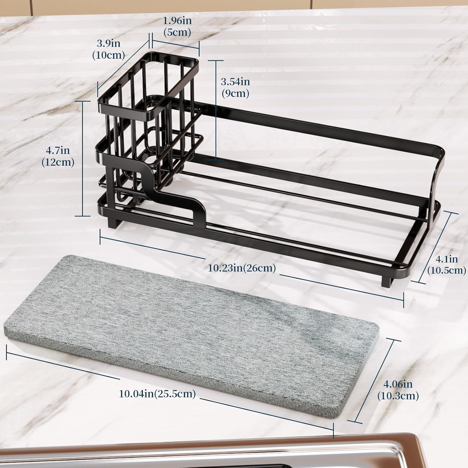 - [Fast Water Absorption and Drying]: Equipped with a sink caddy sponge holder featuring a diatomite base, it quickly absorbs water and dries fast, preventing water spots and odors, while keeping your items dry
