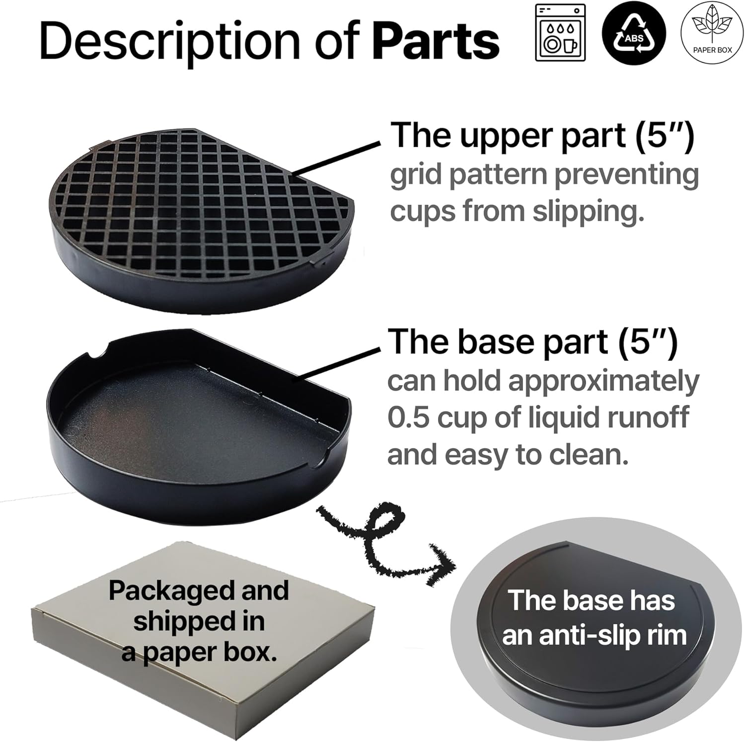 5" Coffee Drip Catcher 5 inches Drip Tray for Espresso Machine Carafe Water Urn Durable ABS Plastic, Black