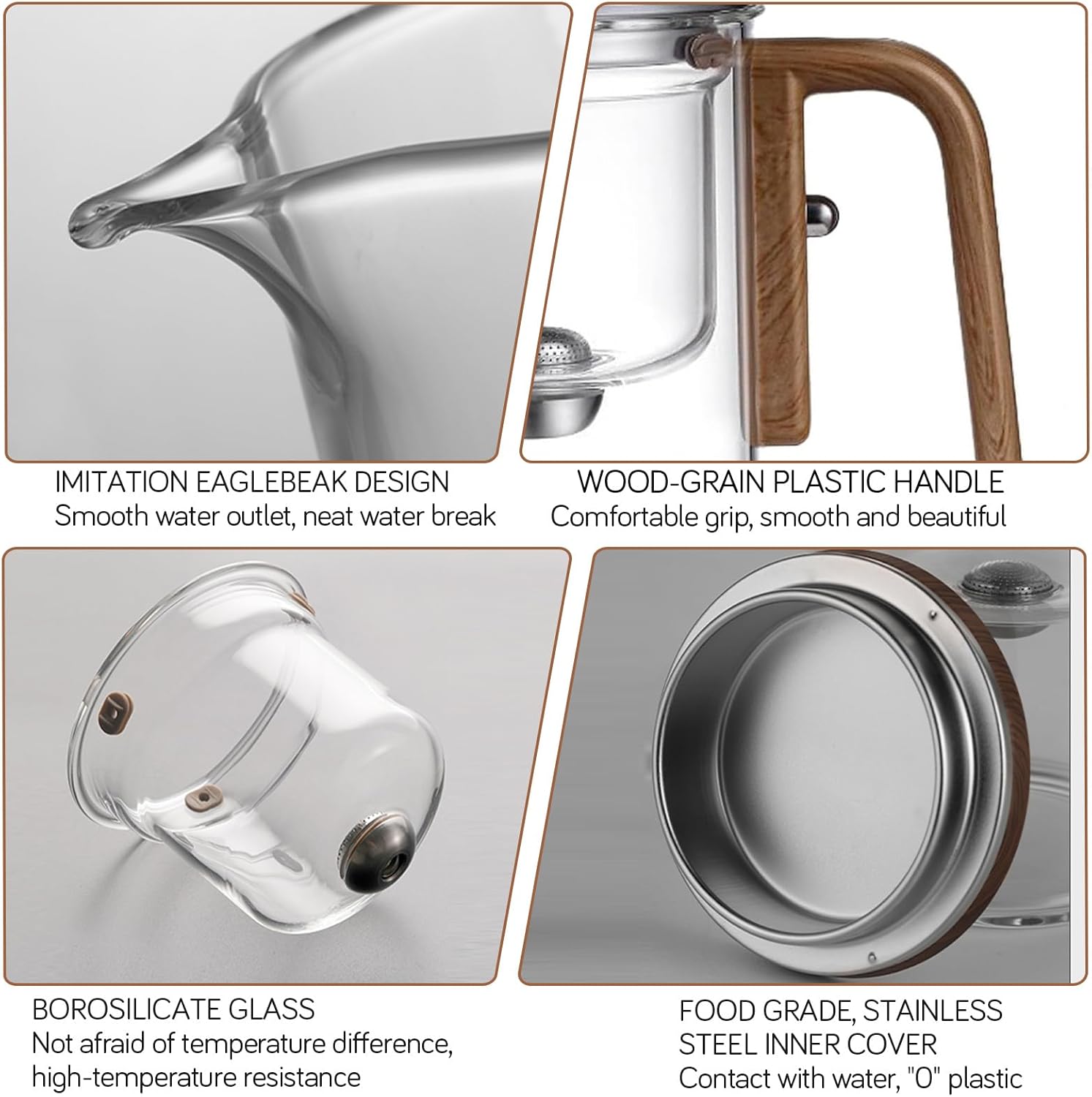 - PRACTICAL FEATURES: Built-in infuser and strainer system keeps tea leaves contained while allowing full flavor extraction. This Water Separation Glass Teapot is made up of three parts, the structure is simple and clear, easy to clean, just simply wash it on the faucet after brewing tea, there will be no dead-end stains left behind