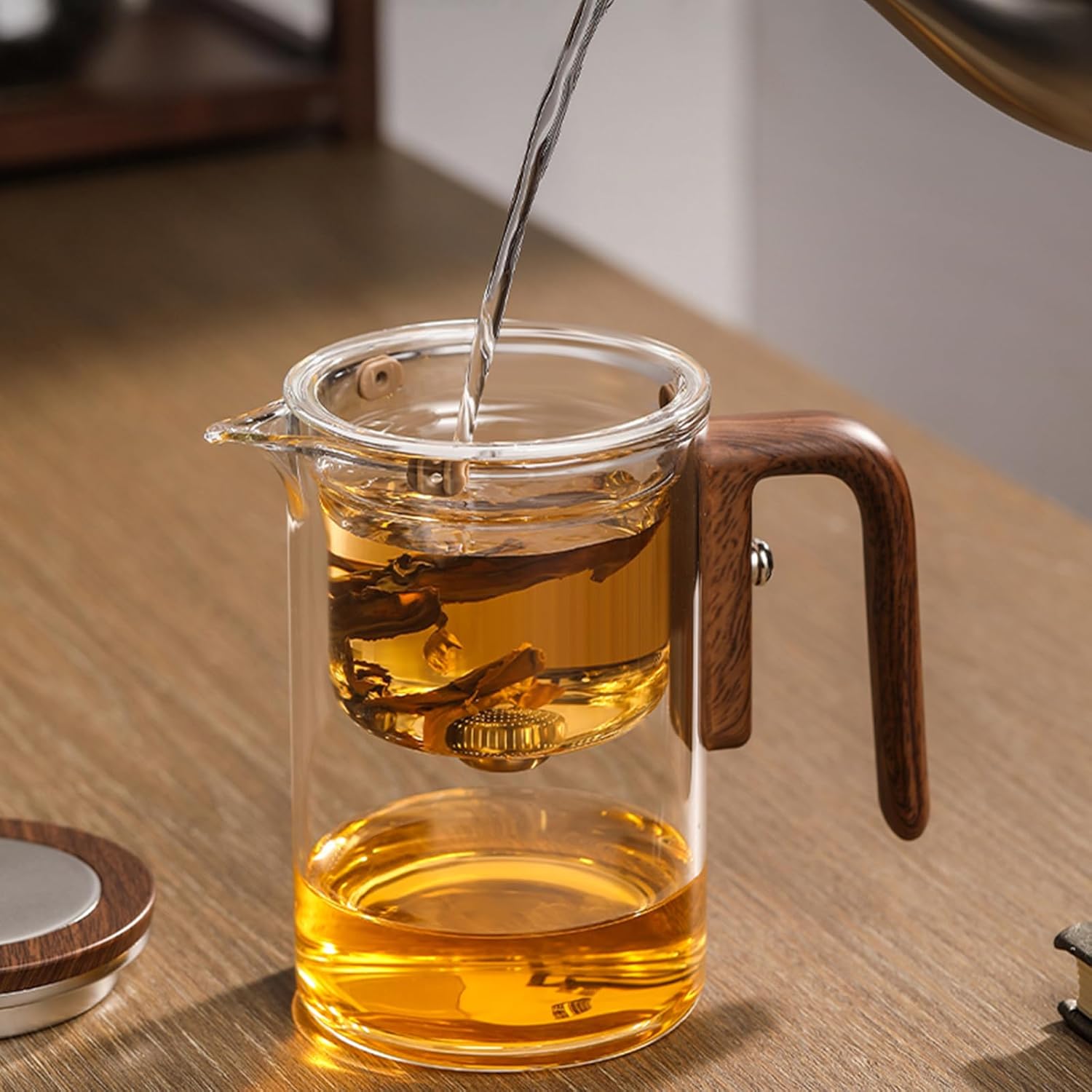 - HEAT RESISTANT: Crafted from premium borosilicate glass that withstands temperature changes and prevents cracking. Elegant high-quality, anti-scald wood-grain plastic handle. The thoughtfully designed lid helps maintain the optimal brewing temperature