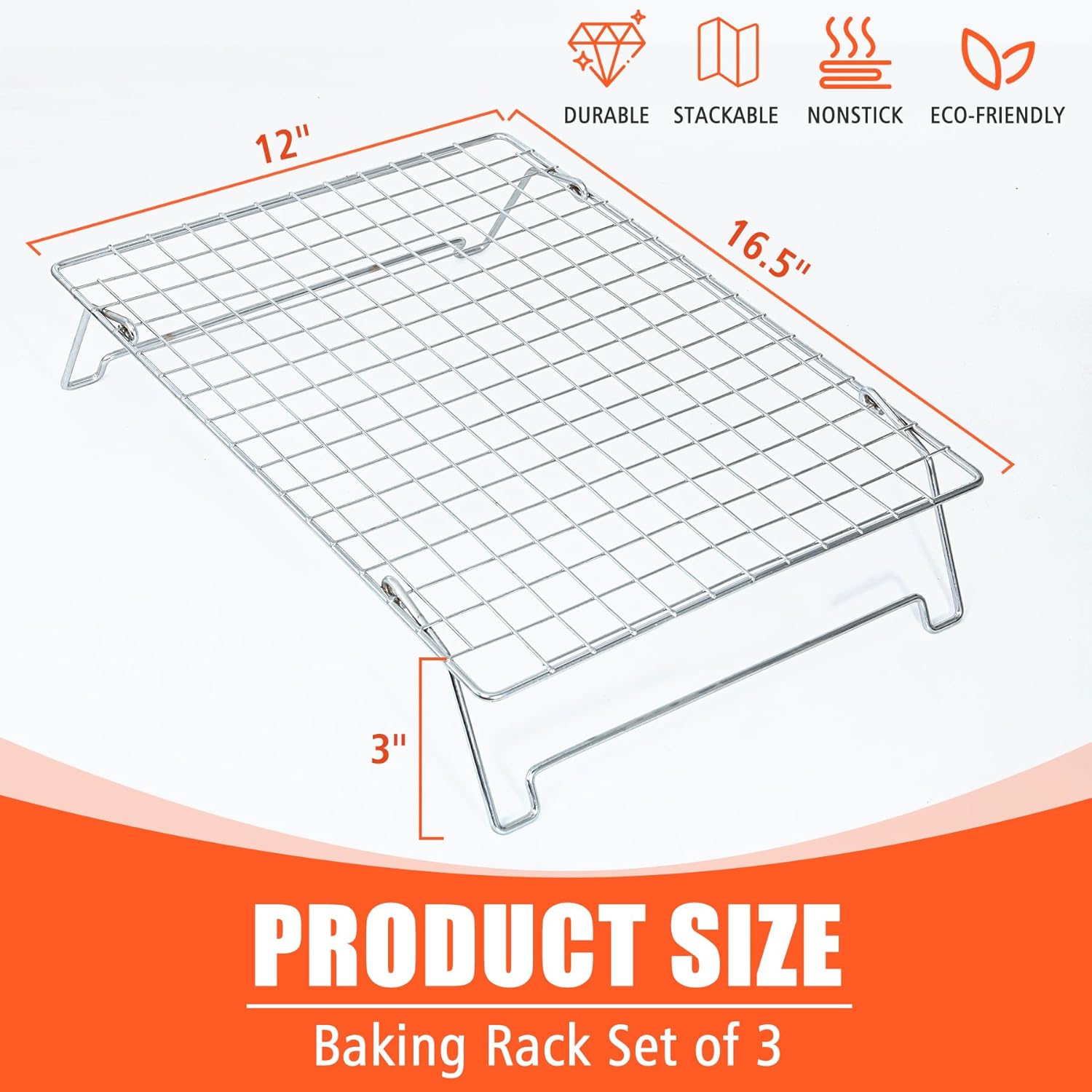 - Cooling Rack, 304 Stainless Steel 3 Tier Cooling Rack for Cooling, Roasting and Grilling, Heavy Duty and Collapsible, Oven and Dishwasher Safe, 12" x 16.5", 2 Pack