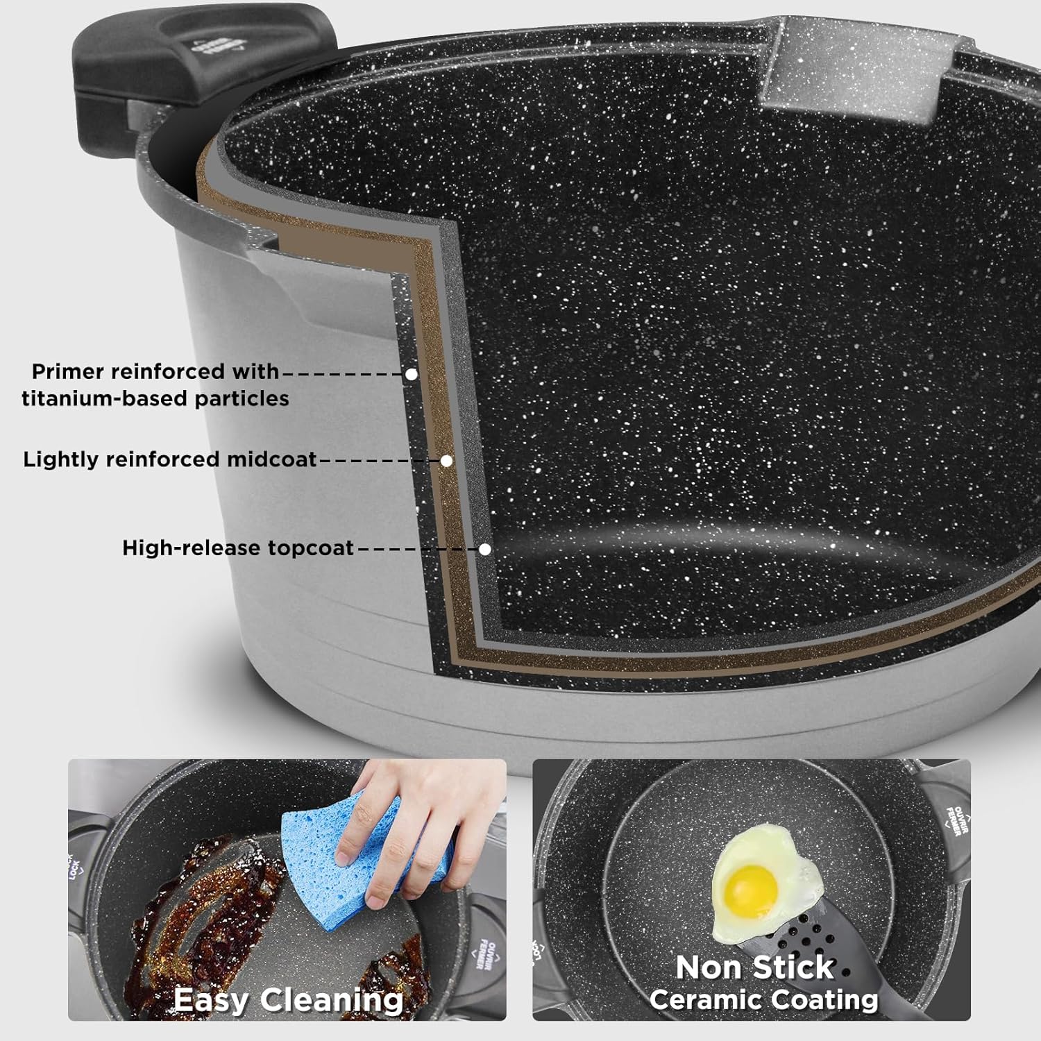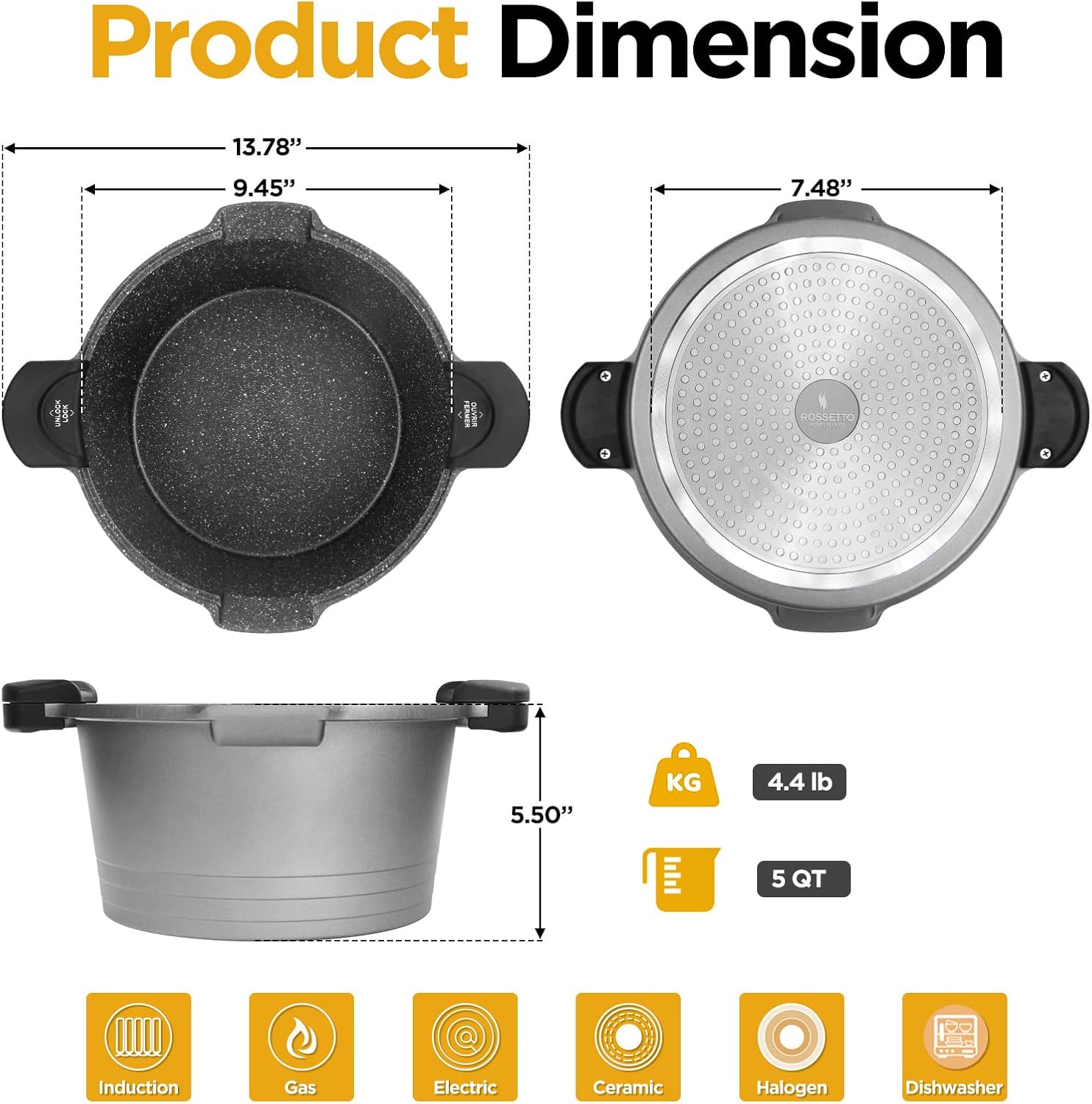 - Spacious 5QT Capacity – Ideal for cooking large portions of pasta, soups, stews, and boiling vegetables—perfect for family meals and gatherings.
