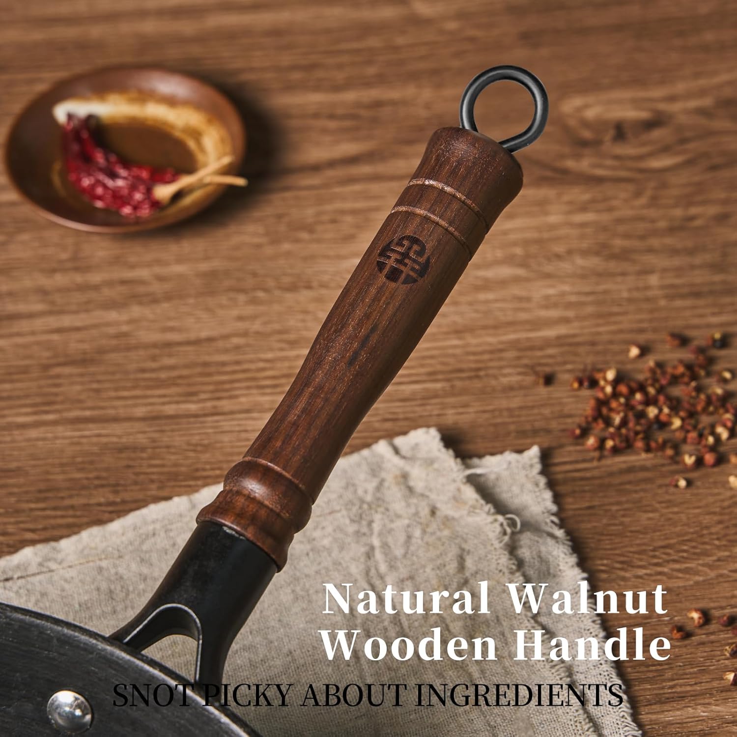 - ANCIENT CRAFTMANSHIP:Wangyuanji Cast Iron Wok has manufactured for almost 400 years by Chinese.Each wok is made through 37 different handcrafting processes to its perfection,a well-maintained wok can last decades and becomes a symbol of family prosperity