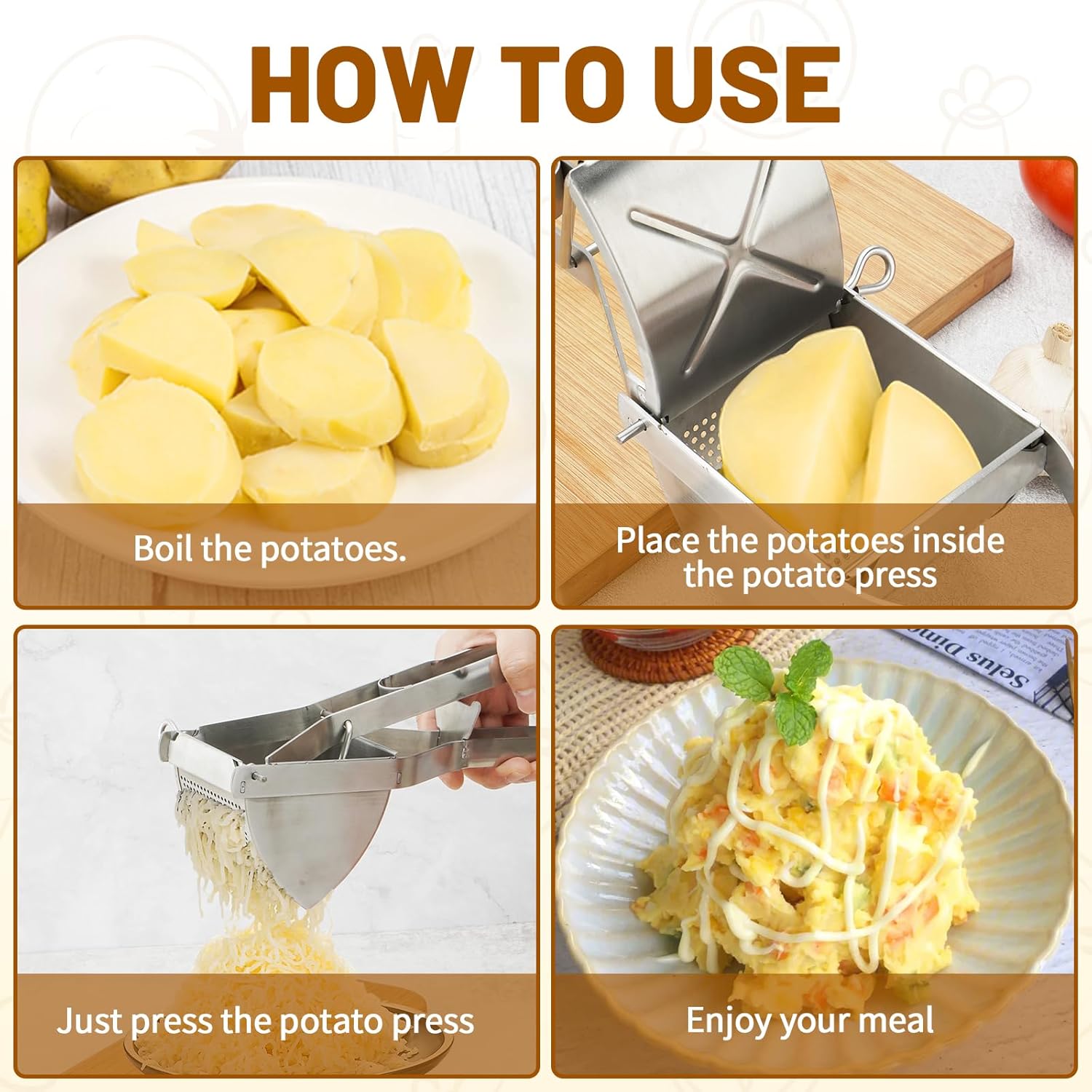 Heavy Duty Stainless Steel Professional Ricer for Mashed Potatoes and Ricer Kitchen Tool, Mash Potato Masher for Creamy Mashed Potatoes (Potato Ricer Set)