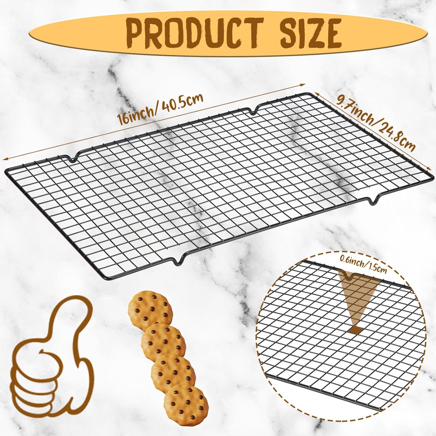 - Right Size: the wire rack for baking is about 16 x 9.8 inches/ 40.5 x 24.8 cm, appropriate dimension to fit various areas at your home, convenient to carry and store without occupying much space on your countertop or dining table, suitable for most standard ovens