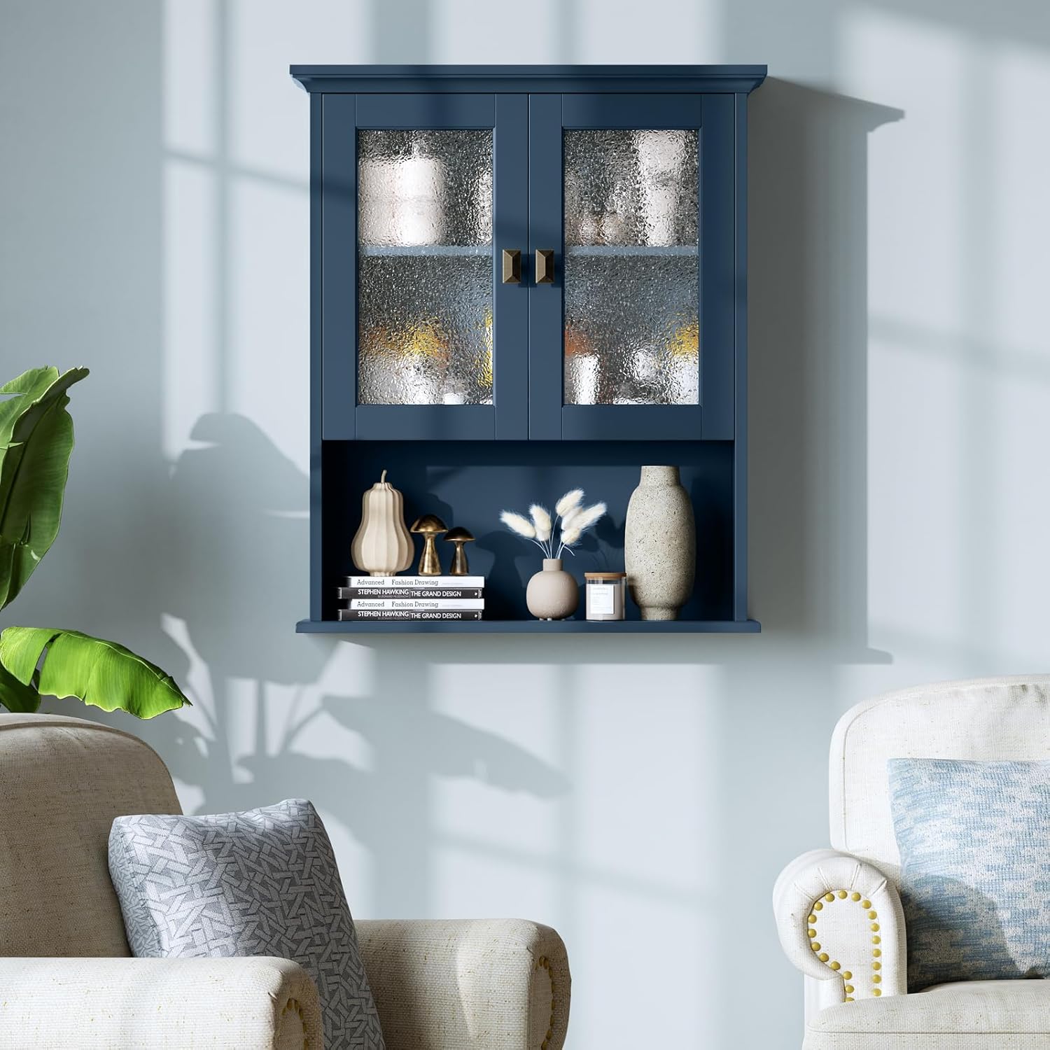 Bathroom Cabinet Wall Mount, Medicine Cabinet Over Toilet Storage Cabinet with Glass Door Build-in Spirit Level Cupboard Hanging Storage for Bathroom Laundry Kitchen Living Room (Ultramarine)