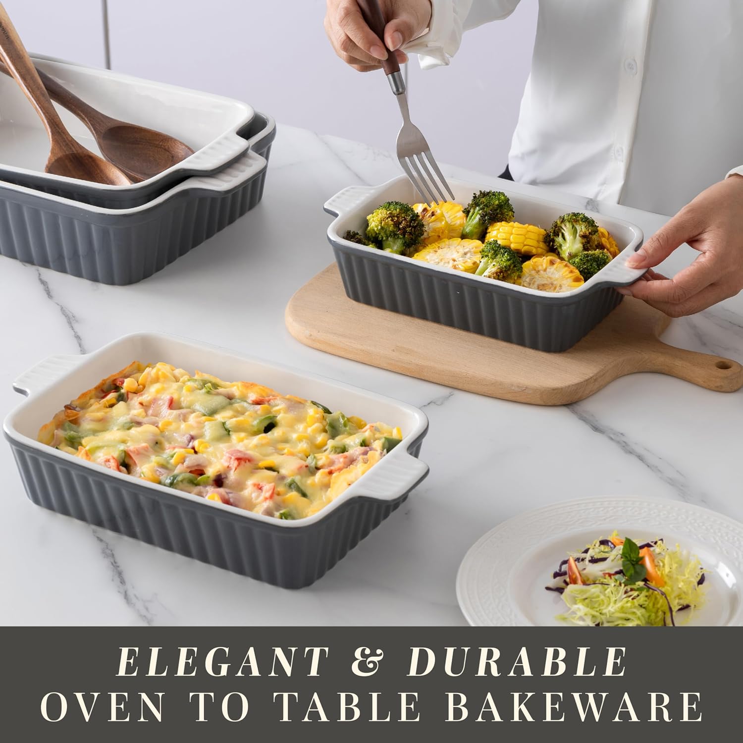 - Versatile 4-Piece Ceramic Casserole Dish Set – Includes 4 baking dishes in assorted sizes, perfect for casseroles, lasagna, roasted veggies, baked pasta, and desserts. Ideal for family dinners, potlucks, and everyday baking.
