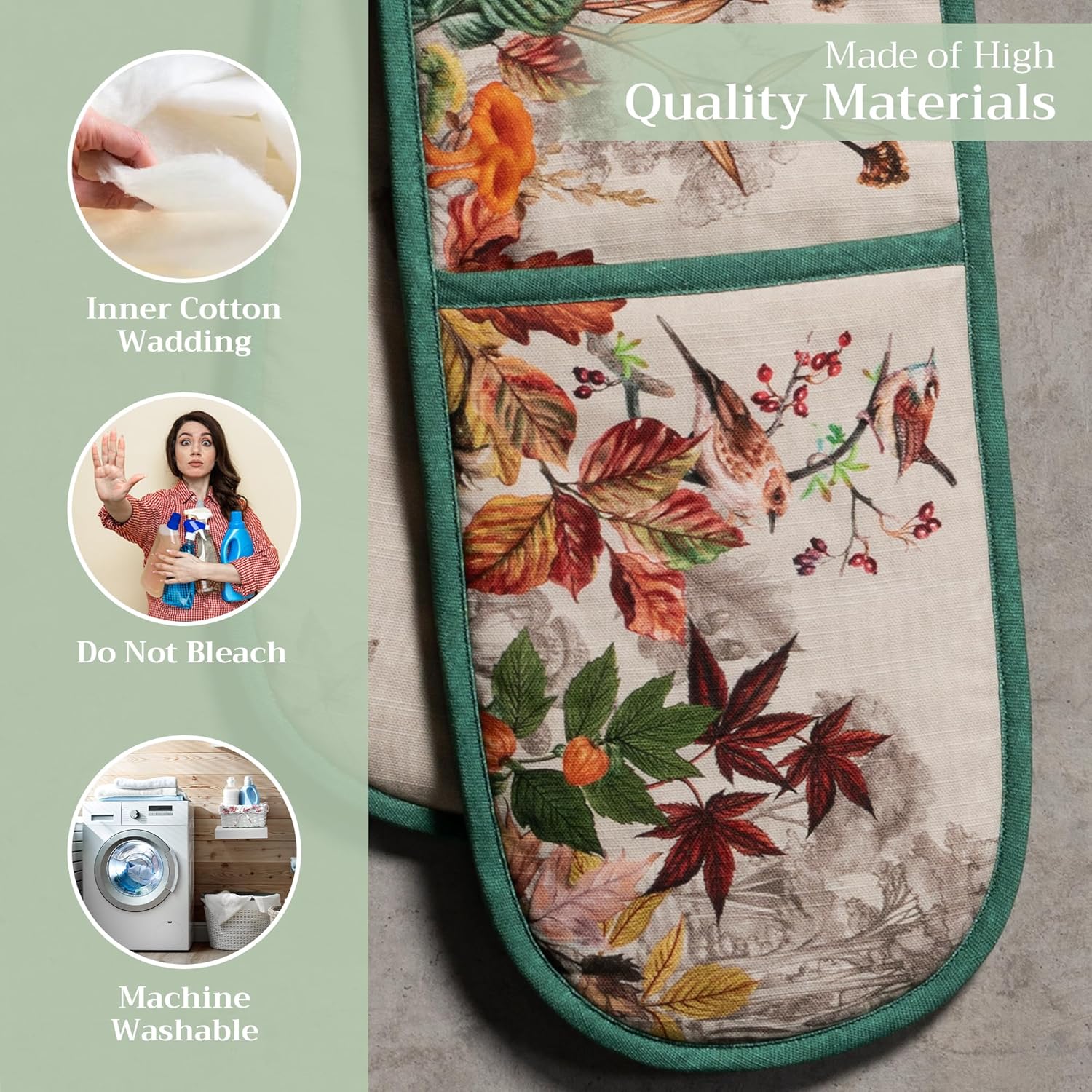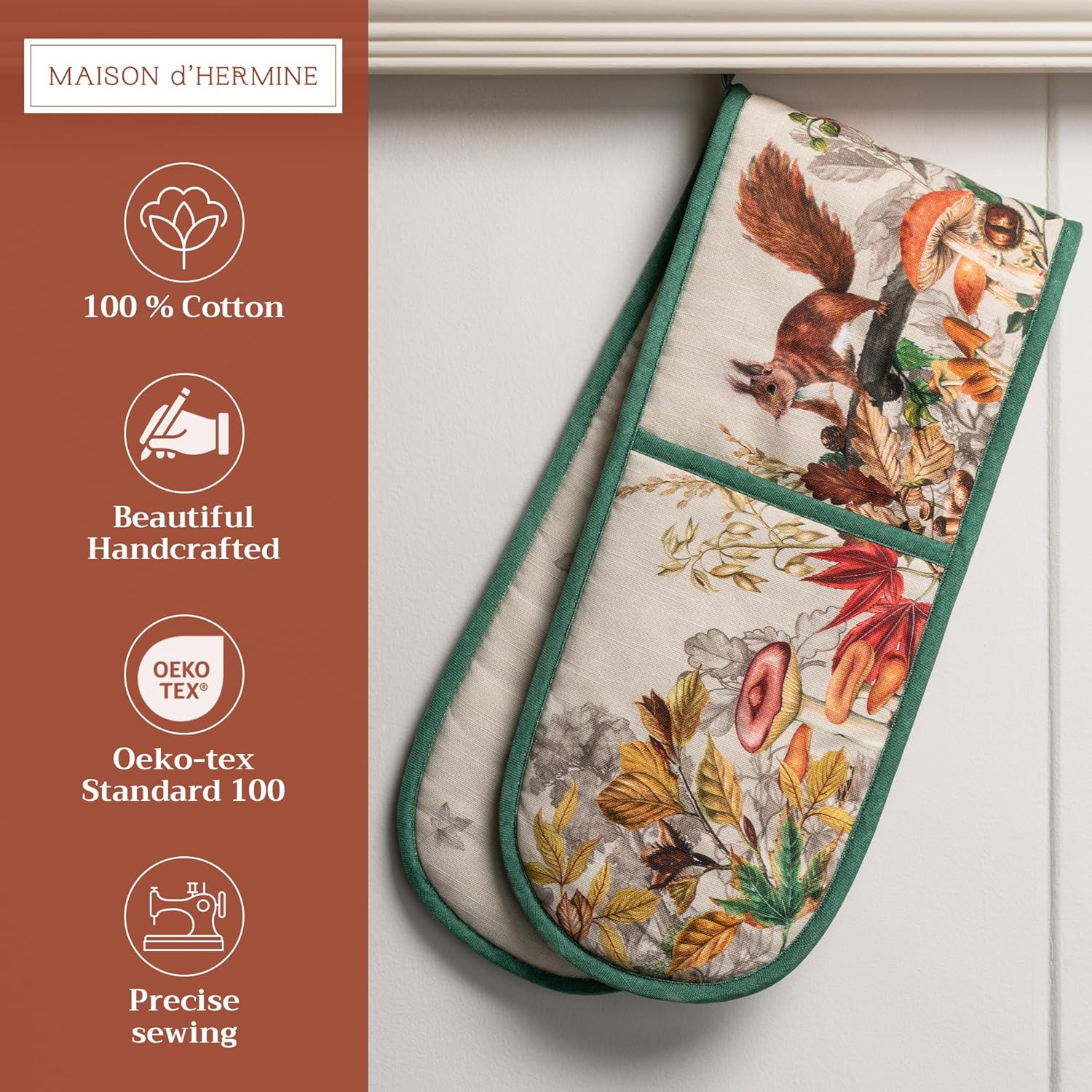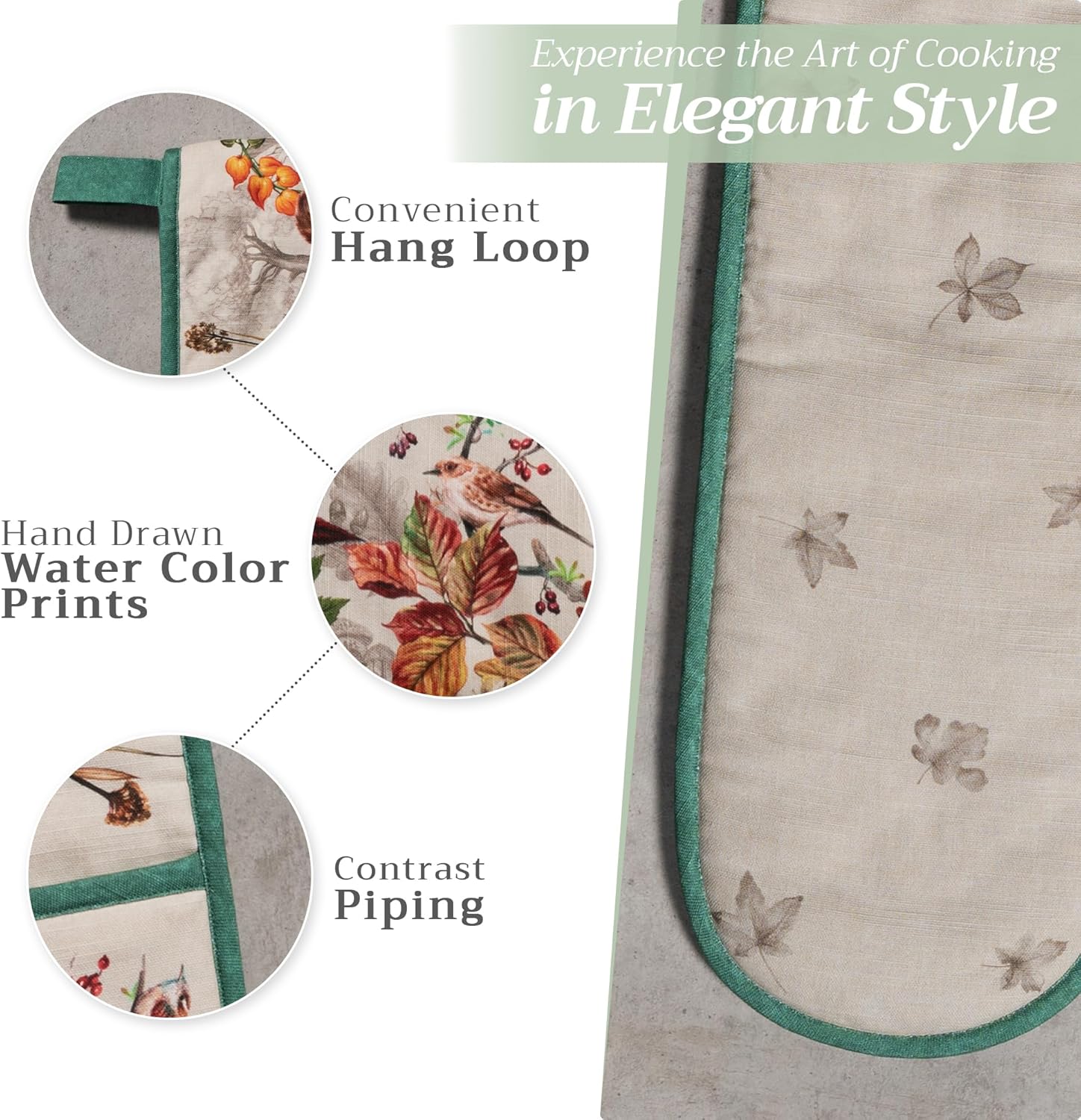 Maison d' Hermine Double Oven Mitts 100% Cotton 7"x35" Double Oven Mitt Heat Resistant BBQ Cooking Gloves with Loop, Baking, Grilling, Home, Kitchen, Handling Hot Pans (Recolte)