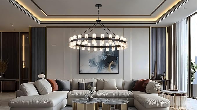 - 【Modern Wagon Wheel Chandeliers】: Our this classic and elegant black finishes wagon wheel chandelier ( with clear crystal shade ) is carefully designed to make it blend into the home environment by professional designers. Every part of the lamp body is created by the precise cutting of machinery and the ingenuity of human craftsmanship. The distinctive and eye-catching design of wagon wheel pendant lighting makes them an ideal centerpiece for any room. (Tips: Our chandeliers are too large. Please check carefully the size of the space where you want to install the light fixture before purchasing so that it can fit your space more perfectly.)