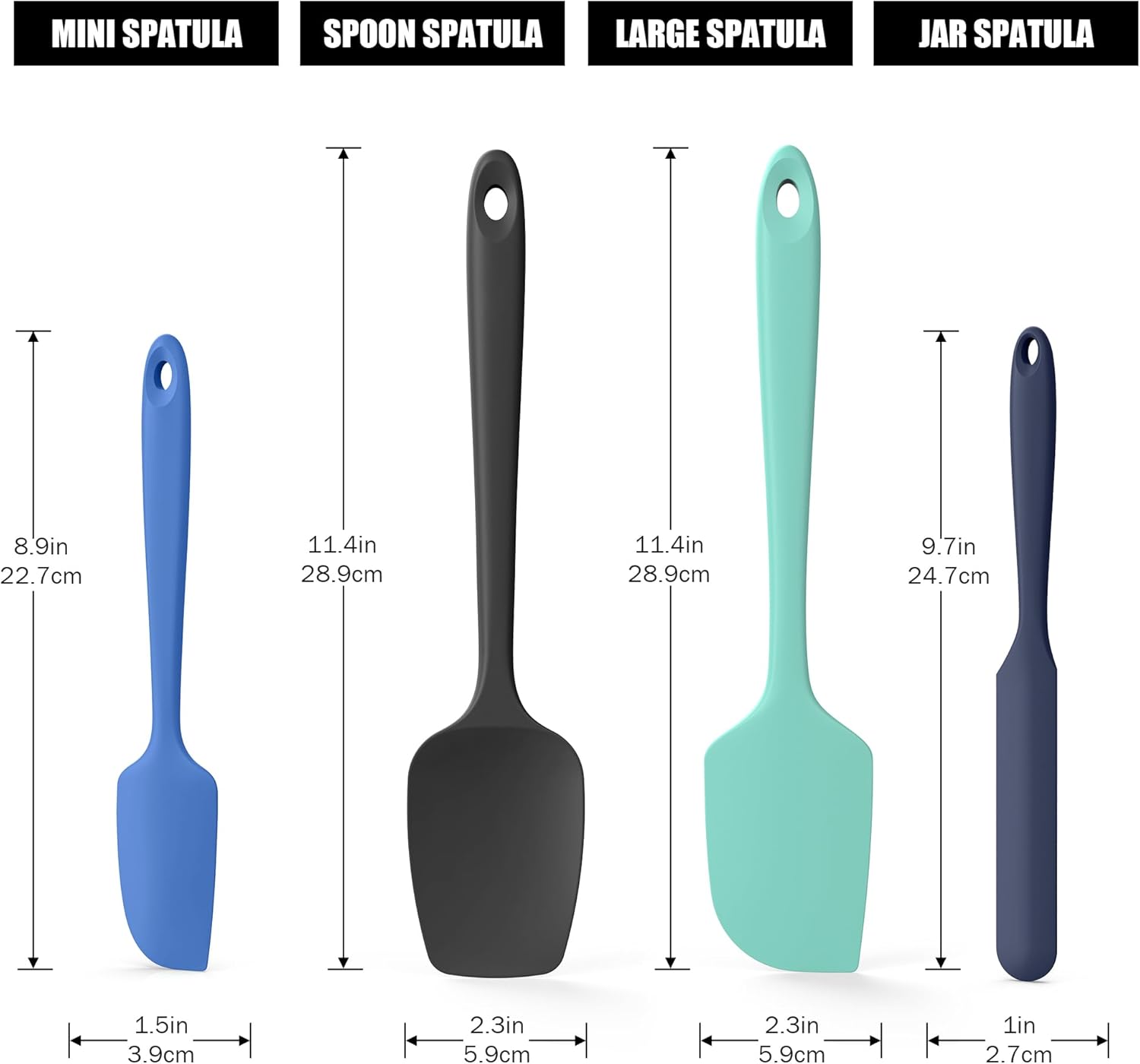 - [Why is the silicone spatula set so versatile?] The Doosu silicon spatula set meets all kitchen needs, featuring a spoon spatula for mixing and scooping, a large spatula for folding and spreading, a mini spatula for small containers, and a jar spatula for scraping jars clean. Each piece is heat-resistant and gentle on non-stick surfaces, ensuring durability without damaging cookware. This set enhances kitchen efficiency, making it ideal for any cooking or baking task.