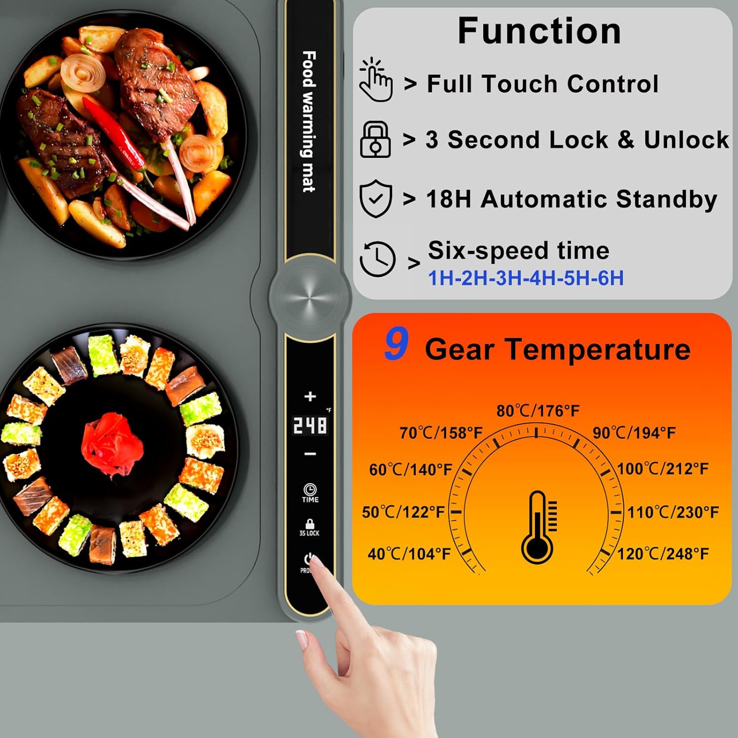 - Wide Application: The warming plate is perfect for family gatherings, entertaining or used as a thawing mat, making it a versatile and essential addition to any kitchen