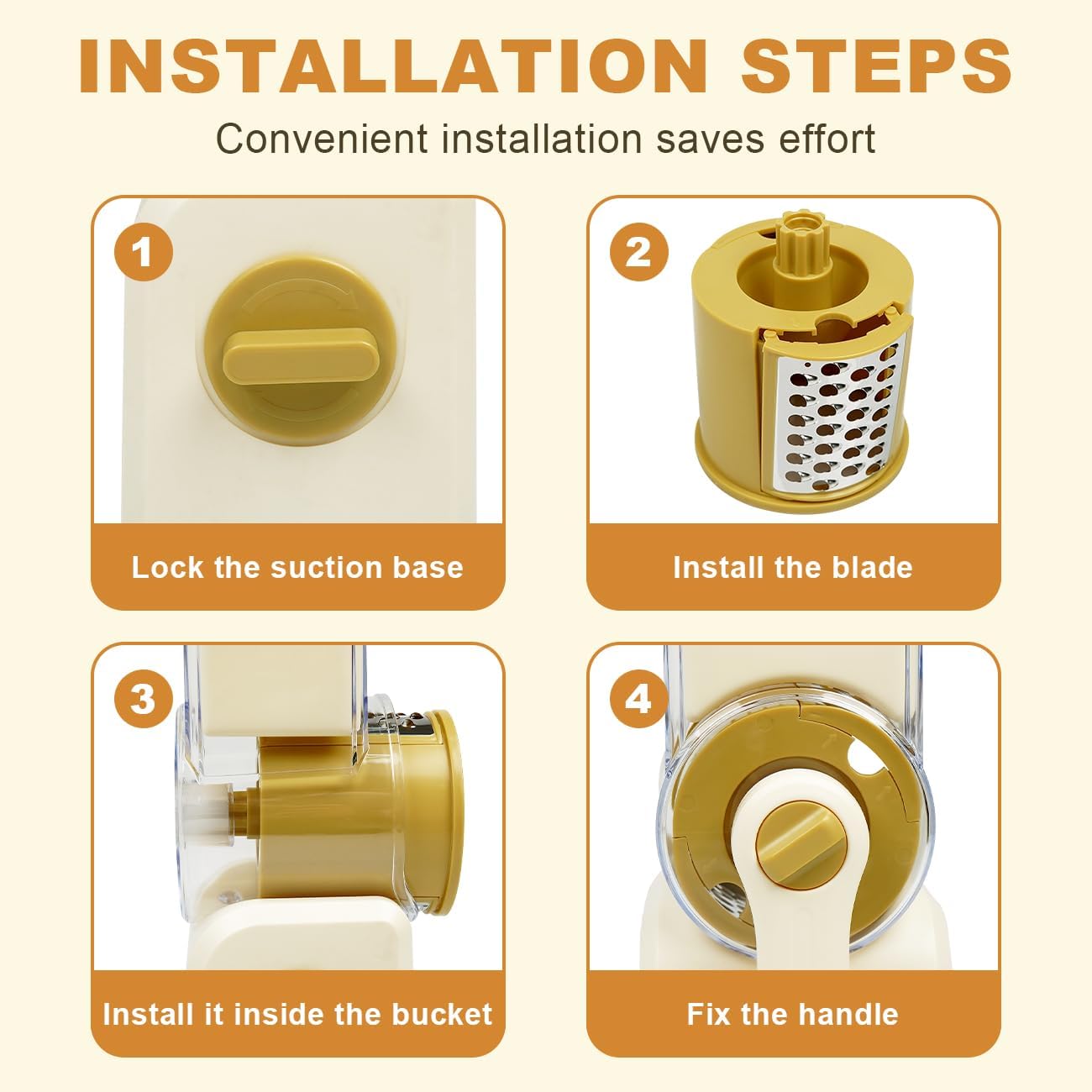 - Sturdy Suction Base: Equipped with a robust suction base, our handheld rotary cheese shredder provides stability during use, ensuring safety and reducing mess in your kitchen as you shred cheese with ease.
