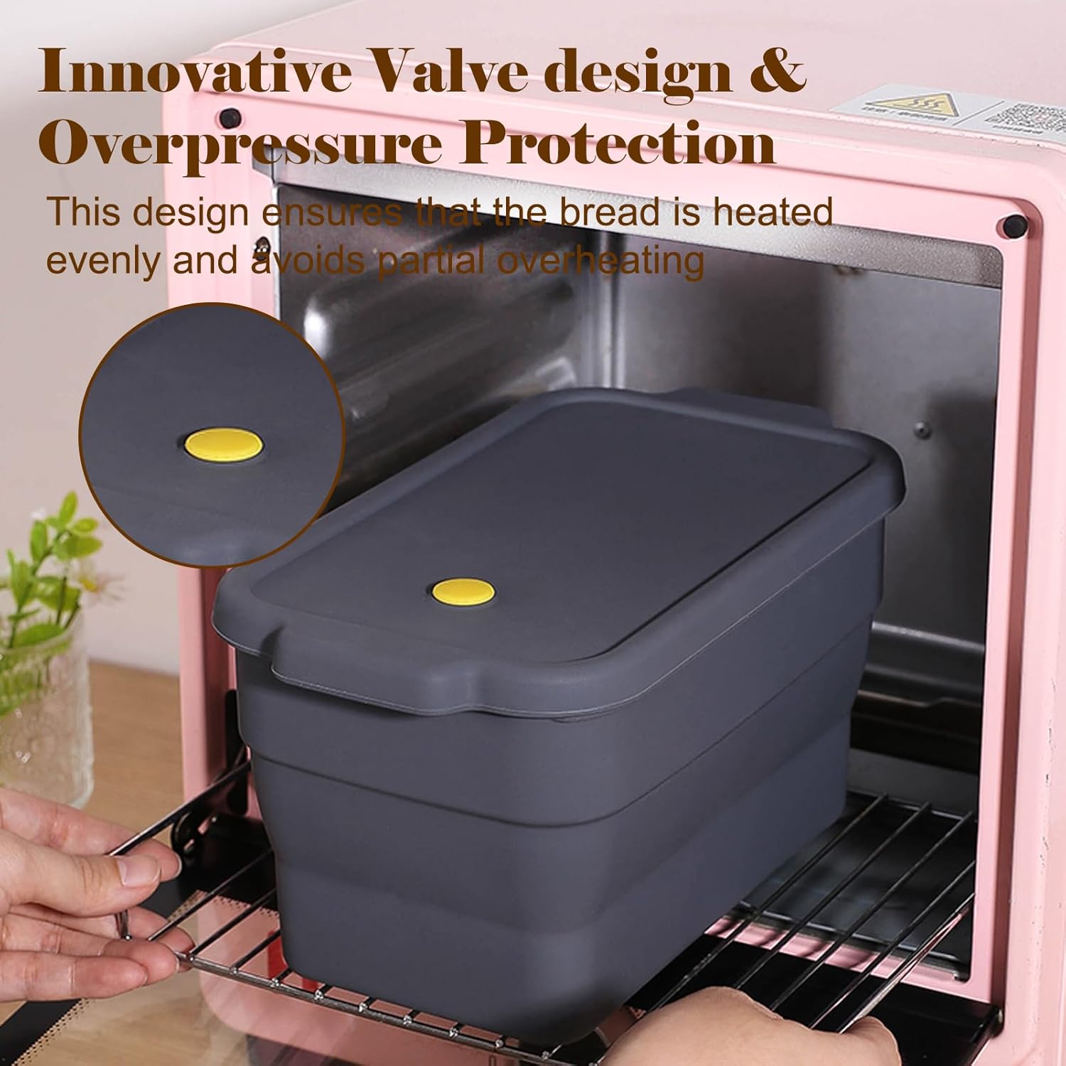 - 【Innovative Folding and Valve Design】The folding design saves kitchen space and can be used as a refrigerator crisper or food storage, and the non-folding state is a toast bread pan. The cover design can lock the moisture in the bread during baking, ensuring that the bread is soft and delicious, and the delicate exhaust valve and overpressure design ensure even heating, which can easily shape the perfect toast bread.