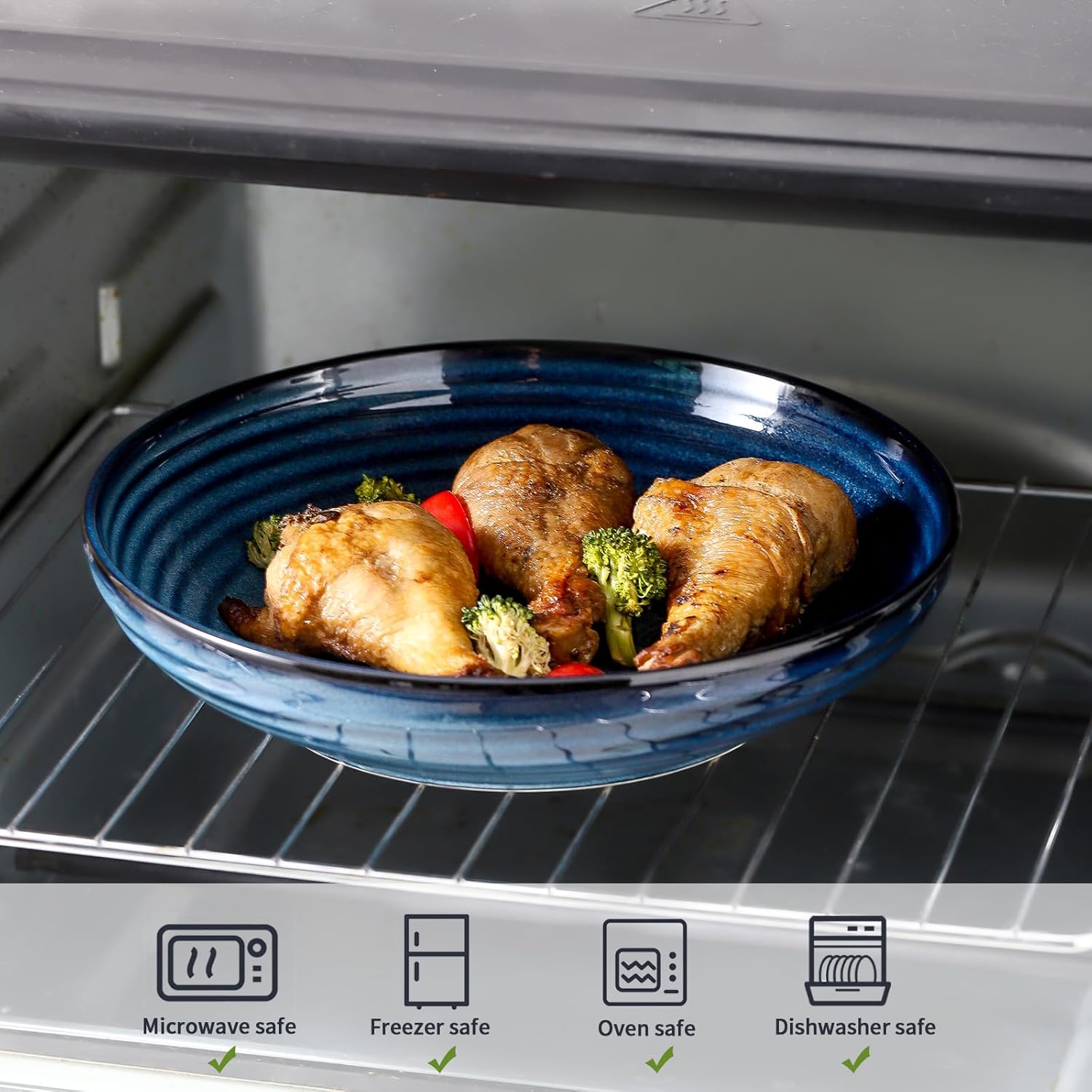 MEKY Ceramic Pasta Bowls, 8.7 Inch Serving Bowls for Salad, 32oz Soup & Fruit, Set of 4,Microwave & Dishwasher Safe, Dinnerware for Family, Entertaining & Everyday Meals (Blue)