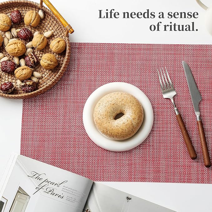 - Elegant and Practical Design: With a luxurious vinyl woven texture, precision cutting, and heat-trimmed edges, our double-sided placemats offer a sophisticated and practical solution. They provide a non-slip surface, resist fading, and are easy to clean, elevating your dining experience