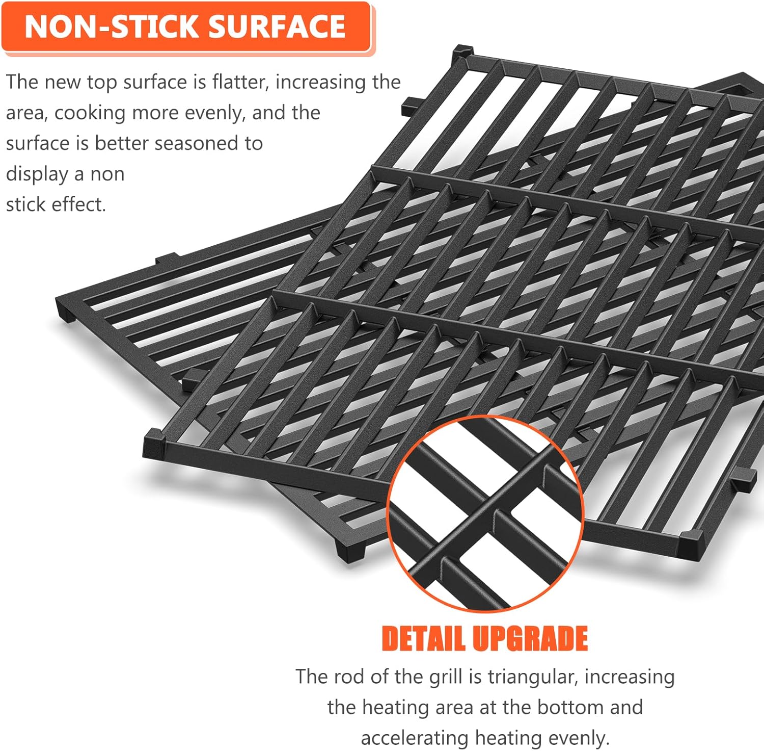 - š„ćNon StickćWhen maintained properly by oiling after each use, these cast iron grill grates for the Weber Genesis 300 grill offer outstanding non-stick properties, ensuring your food cooks to perfection every time. The new-style flat wide slat design of the Weber Genesis grates features a flatter top and smaller gaps between rod bars. This prevents food from falling through and improves heat distribution for more even cooking
