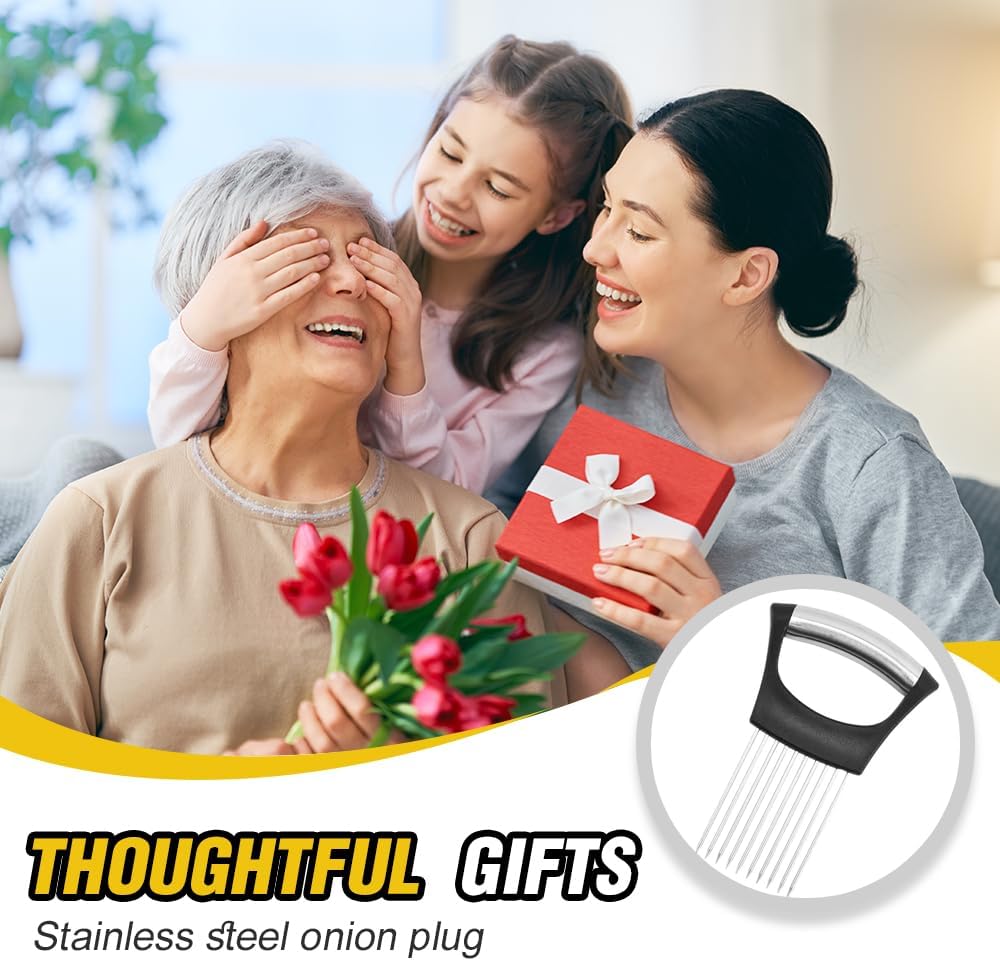 - 【Safe Slicing】Through its unique design, the onion fork clamp can firmly hold the onion, so that when slicing or dicing, the onion will not slide or roll, which improves the safety of the slicing process