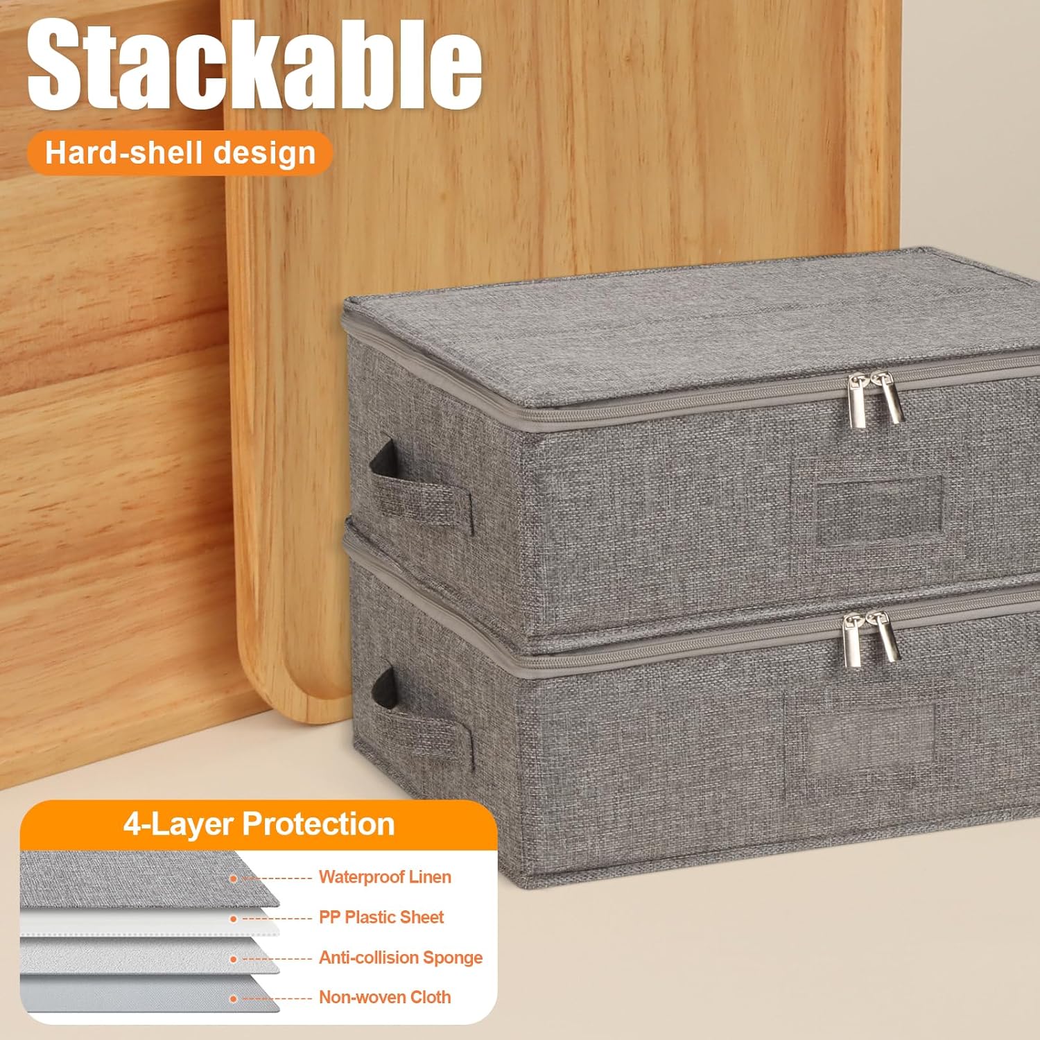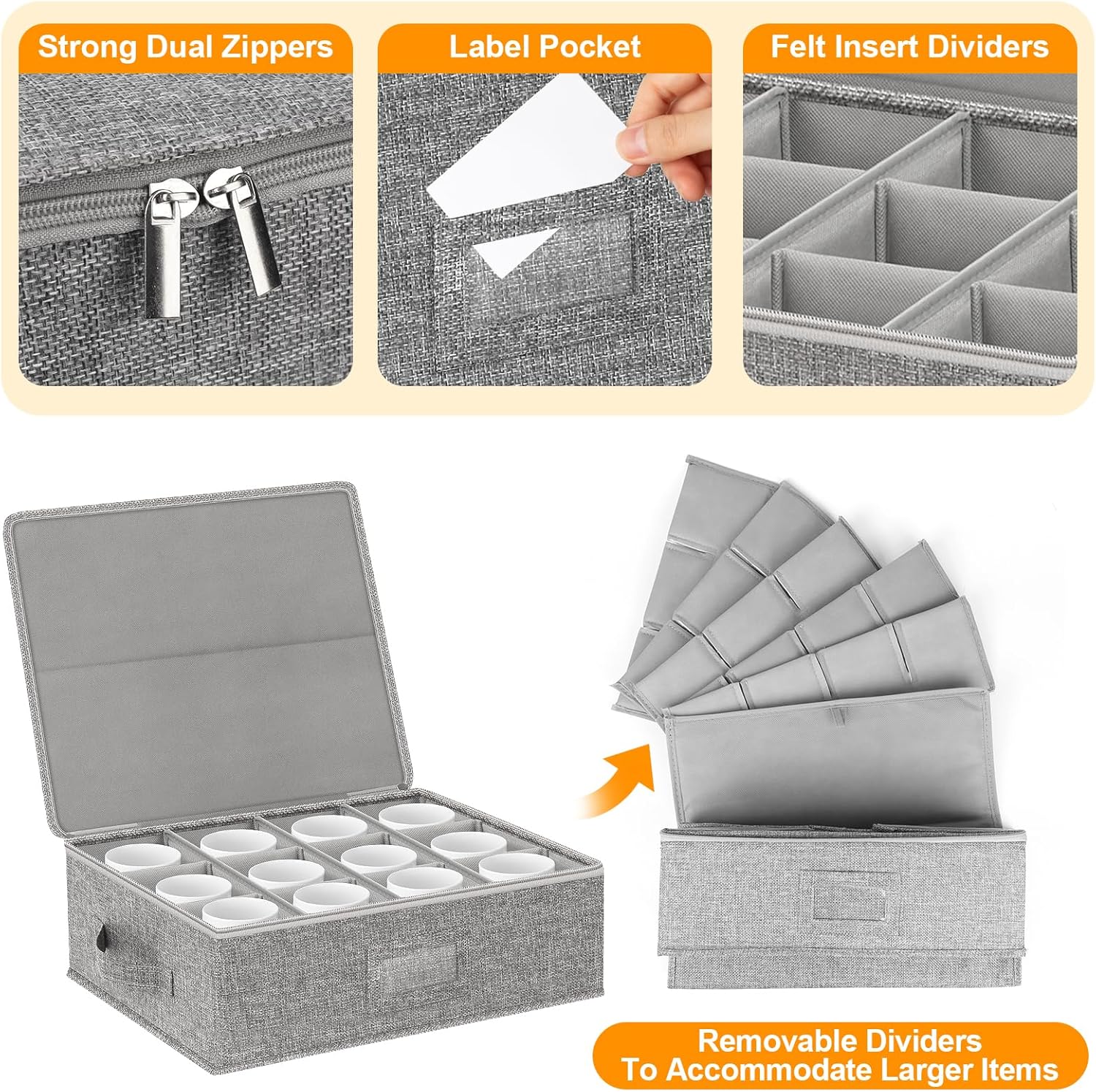 - [Reinforced Handles & Stackable Design]: Featuring two strong, reinforced handles for easy carrying. The hard top lid allows for secure stacking and keeps your mugs & cups dust-free. Includes a label holder for quick and easy content identification. Premium, heavy-duty two-way zippers glide smoothly for easy access and ensure long-lasting durability.