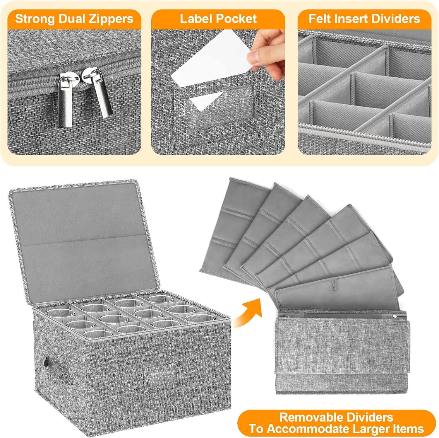 - [Reinforced Handles & Stackable Design]: Featuring two strong, reinforced handles for easy carrying. The hard top lid allows for secure stacking and keeps your glasses dust-free. Includes a label holder for quick and easy content identification. Premium, heavy-duty two-way zippers glide smoothly for easy access and ensure long-lasting durability.