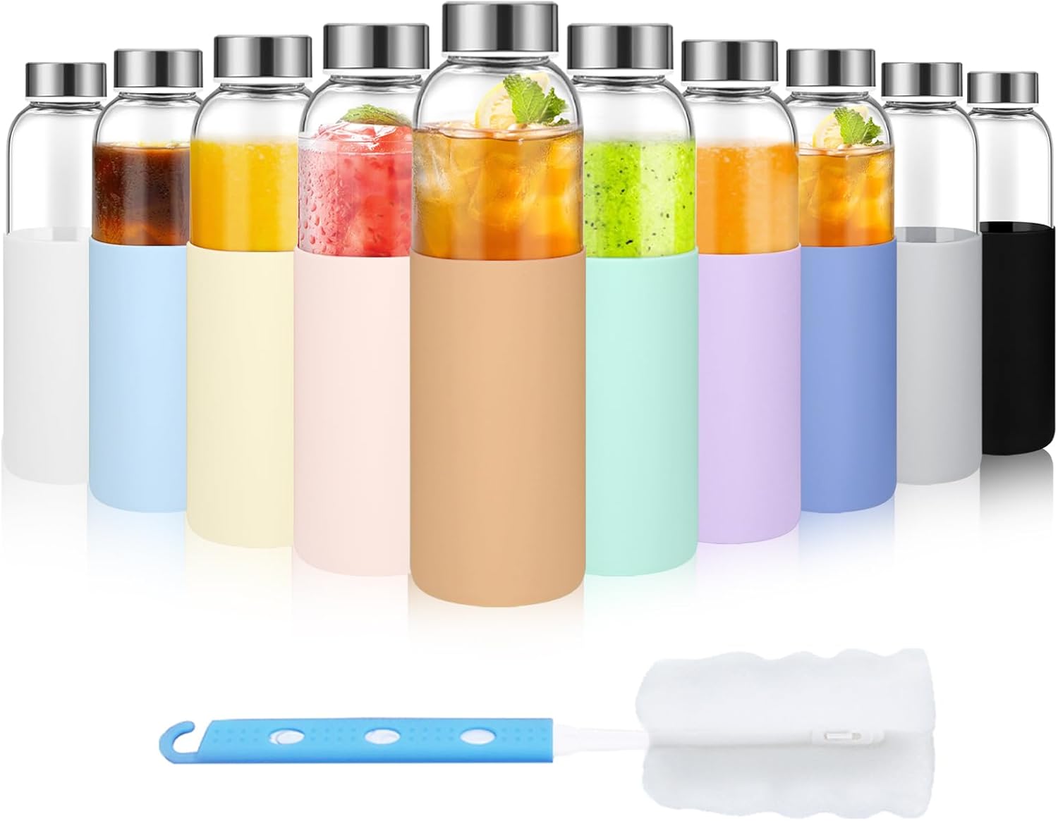 - EVERYTHING TAKES BETTER IN GLASS: the 18 oz glass water bottle is ideal for keeping Juice, water, drinks, brew, cold coffee, iced tea, kombucha, etc