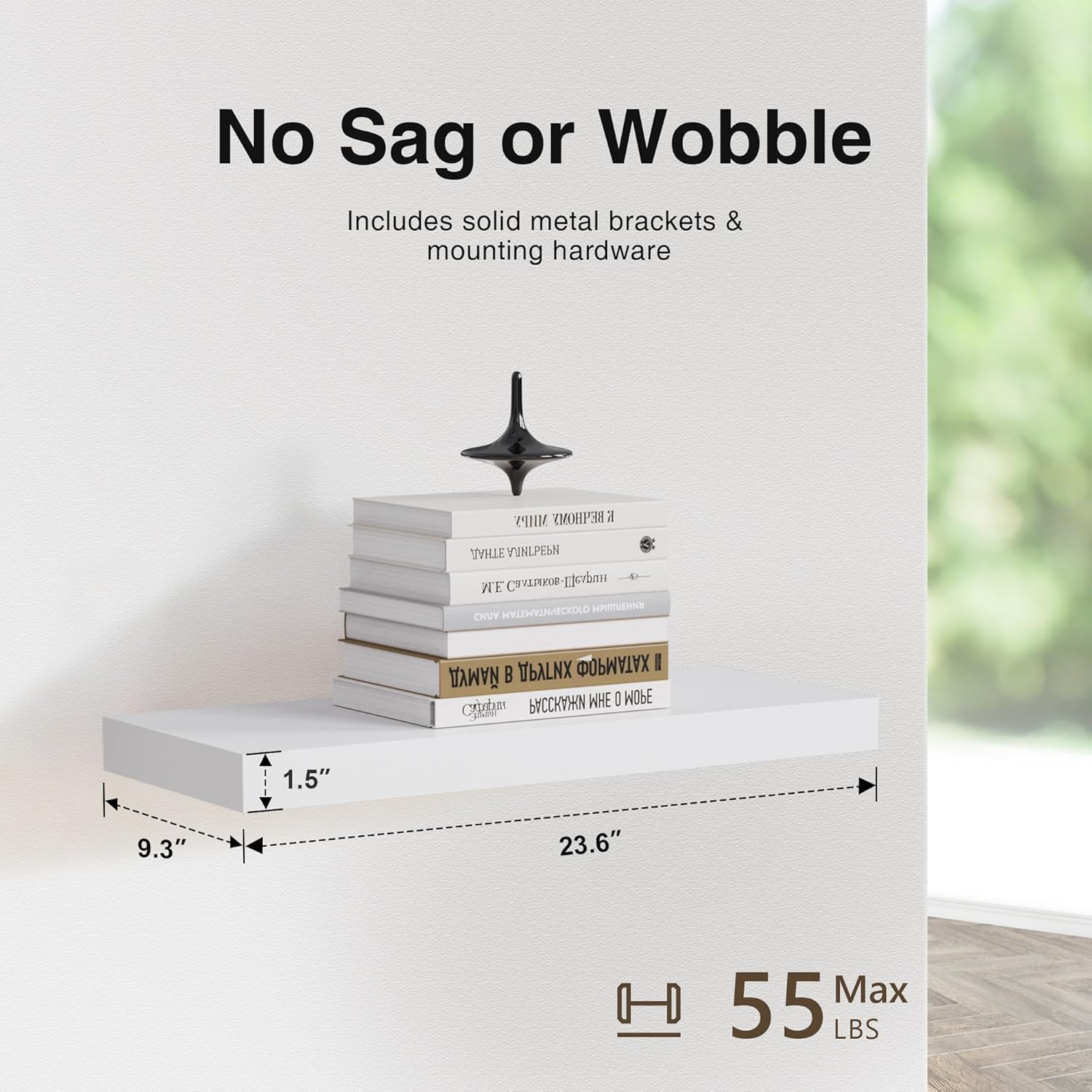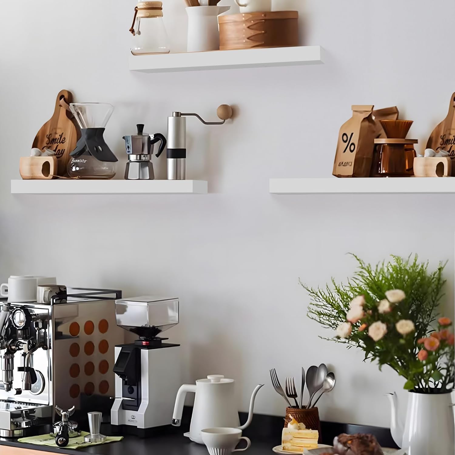 - AESTHETIC APPEAL: Designed to create a visually striking "floating" effect, the concealed mounting system enhances the aesthetic appeal of any room. These sleek and modern shelves not only serve a functional purpose but also add a touch of elegance to your space.