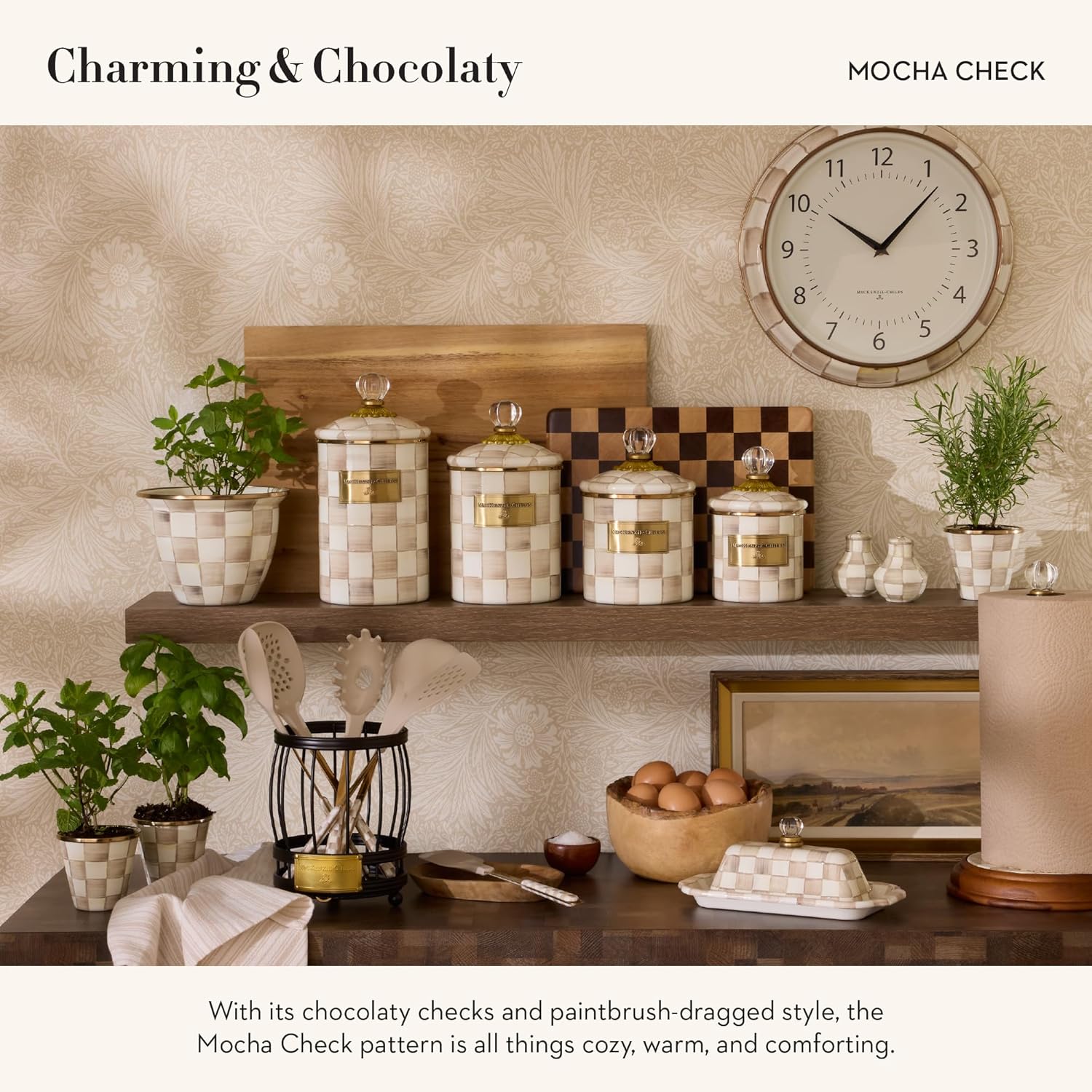 MACKENZIE-CHILDS Enamel Herb Pots, Small Plant Pots for Herbs or Flowers, Set of 3, Brown-and-White Mocha Check