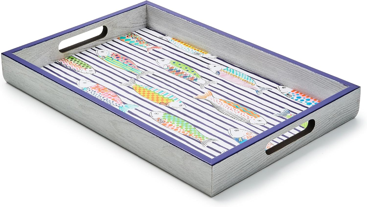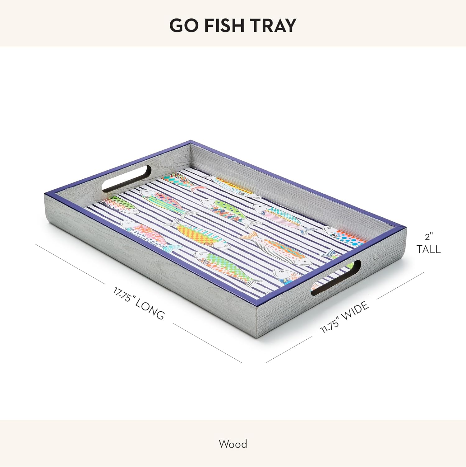 - ELEGANT ROOM ESSENTIAL: Display our colorful Go Fish tray anywhere. This wood serving tray features cutout handles, is decorated with hand-applied transfers, and is finished with a hand-painted edge.