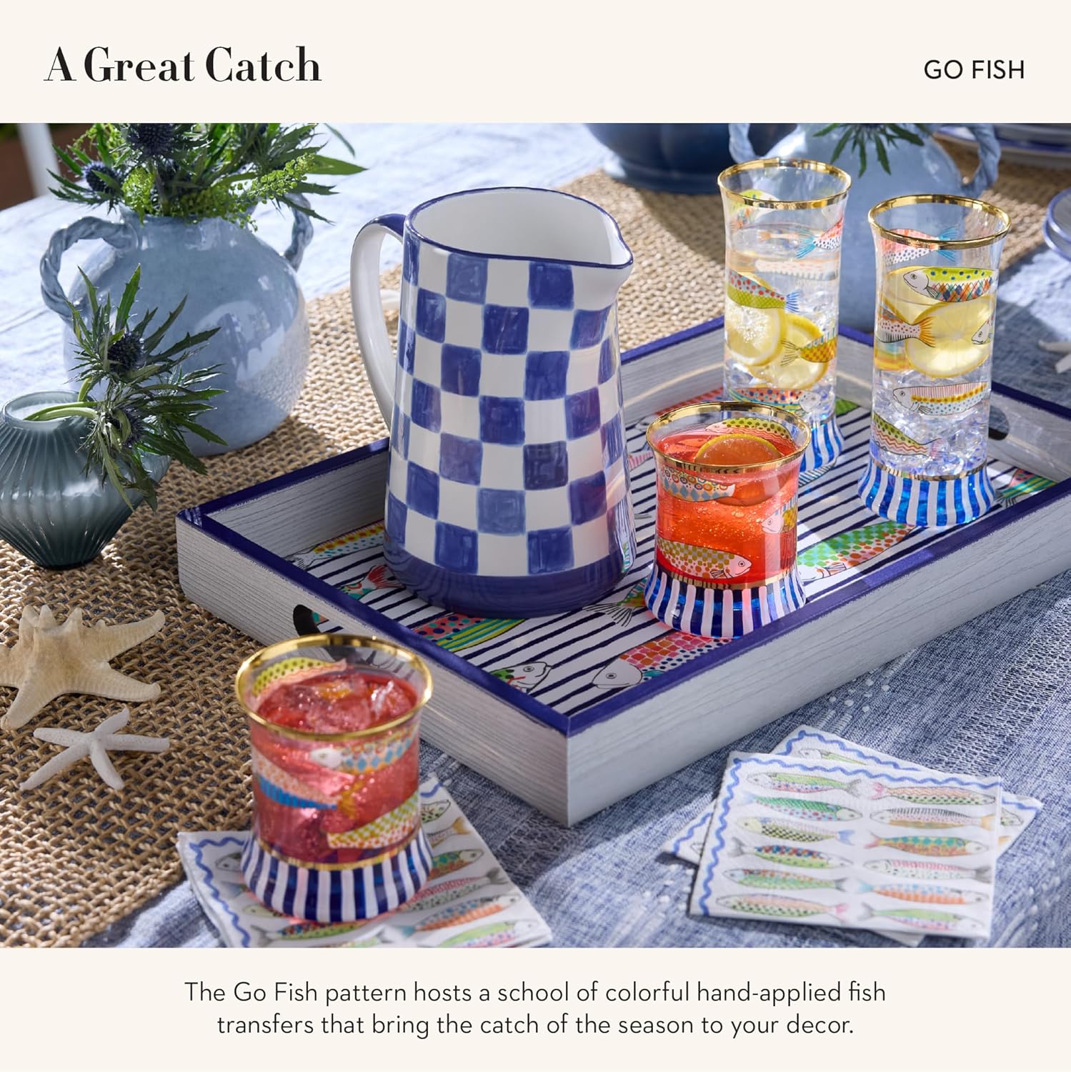 MACKENZIE-CHILDS Wooden Tray with Handles, Rectangular Tray for Serving, Go Fish