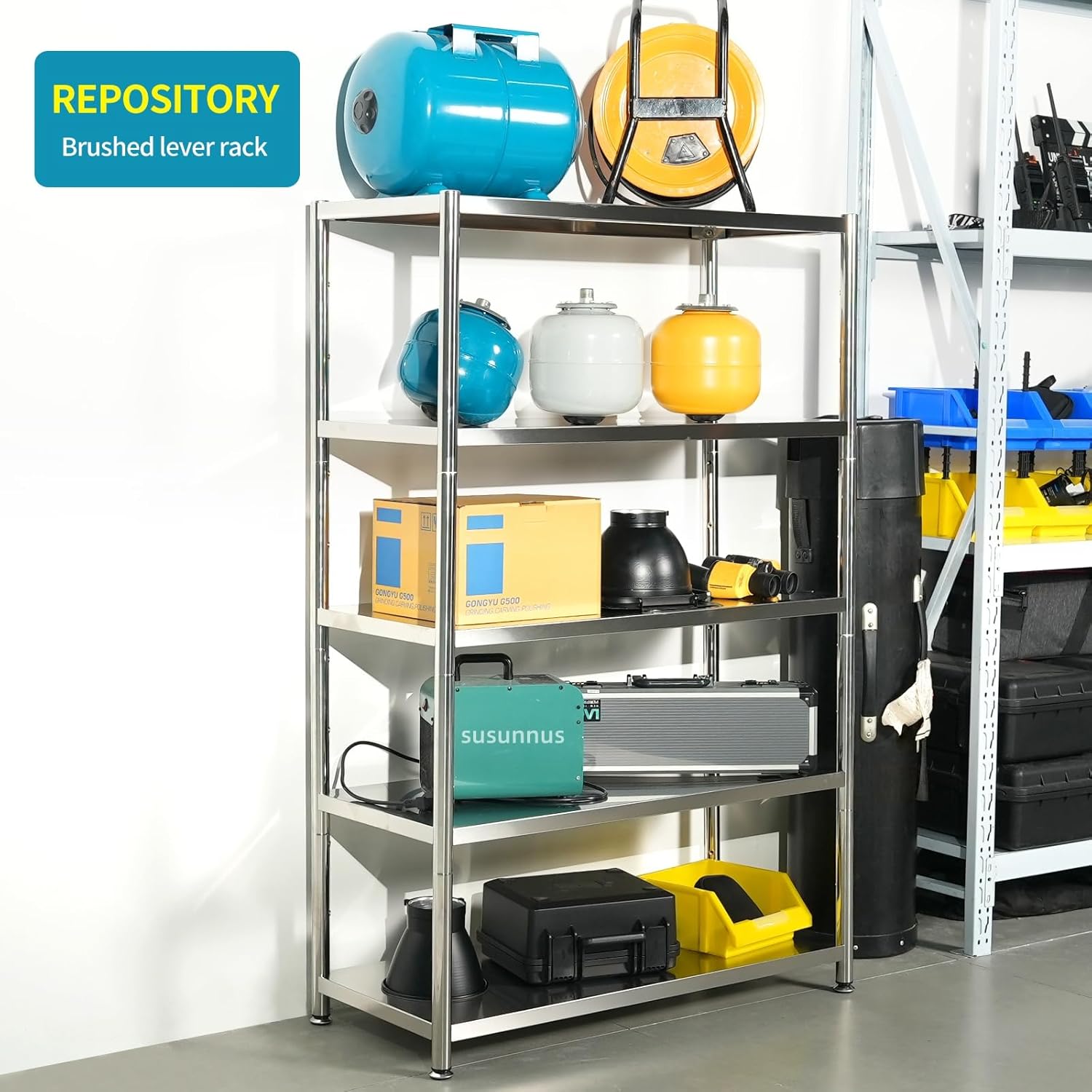 susunnus 5-Tier Stainless Steel Shelf, Heavy Duty Shelving for Kitchen, Garage, Industrial Storage, Kitchen Shelves Adjustable Feet, Easy to Clean (5T-35.8in*15.8in(Without guardrails))