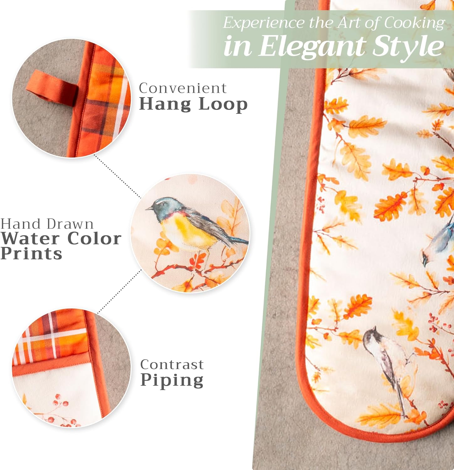Maison d' Hermine Double Oven Mitt 100% Cotton Heat Resistant Cooking Gloves with Loop, Baking Barbeque, Handling Hot Pan, Oak Leaves - Thanksgiving/Christmas (7 Inch x 35 Inch)