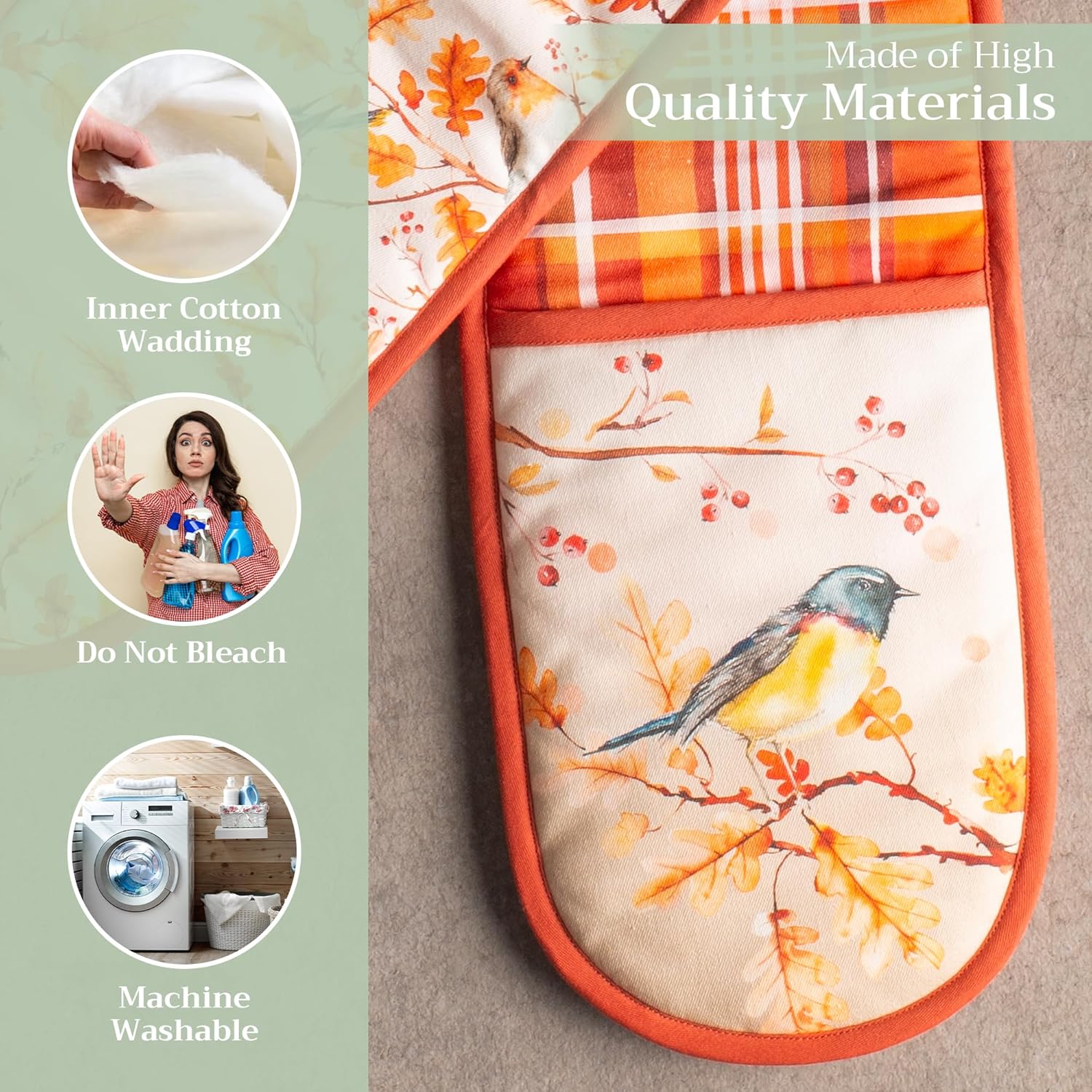 - 100% QUILTED COTTON - Unlike other double oven mitts, we only use the best quality cotton to ensure that only the finest gloves produced end up on your hands