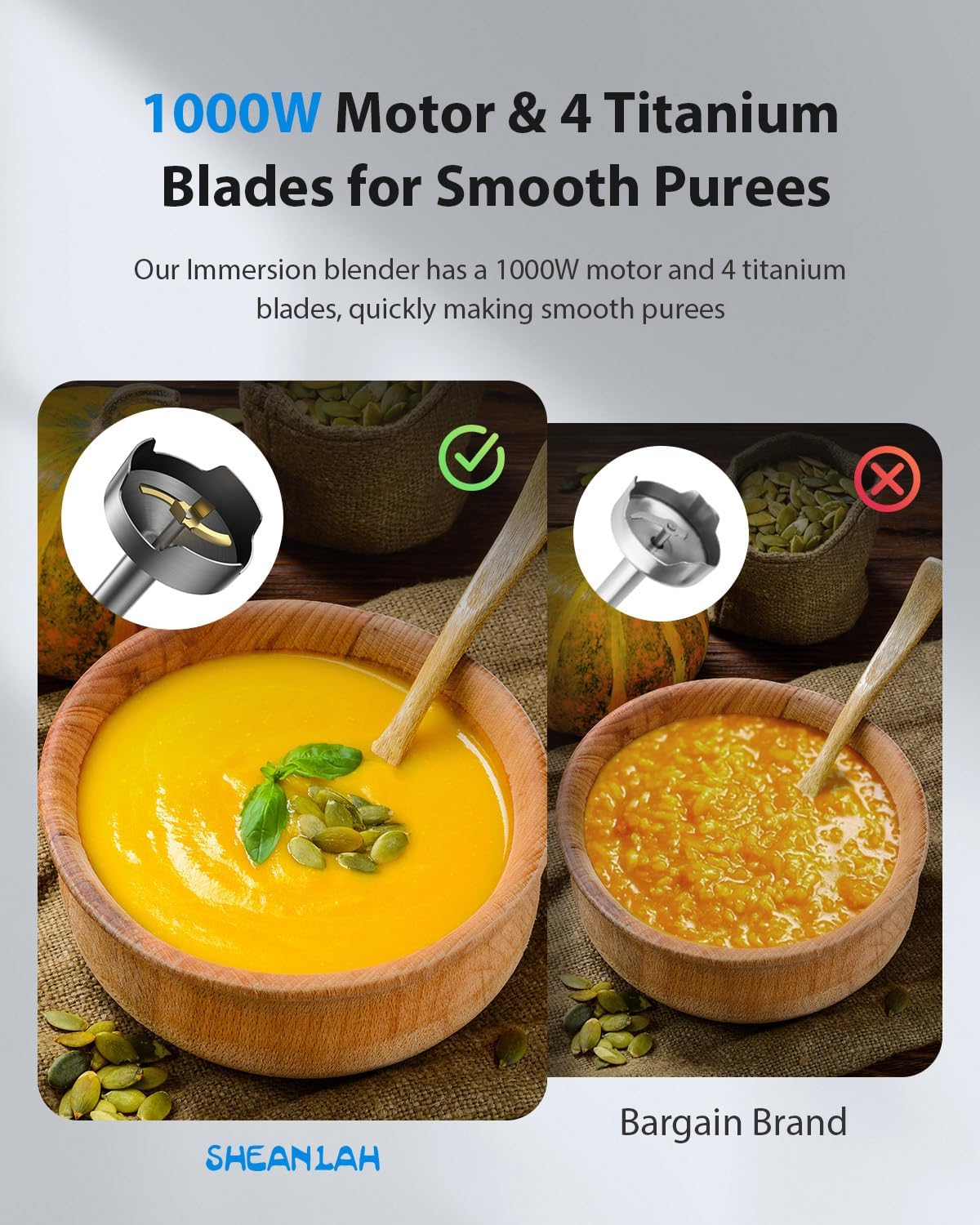 - 【1000W Copper Brushless Motor】Our 2025 Handheld Immersion Blender is equipped with a pure copper brushless motor, delivering stable power at 18,500 RPM (±10%). This cutting-edge motor is designed to last over five times longer than standard motors, ensuring you get reliable performance for years to come. So, we confidently back it with a 5-year warranty for peace of mind.