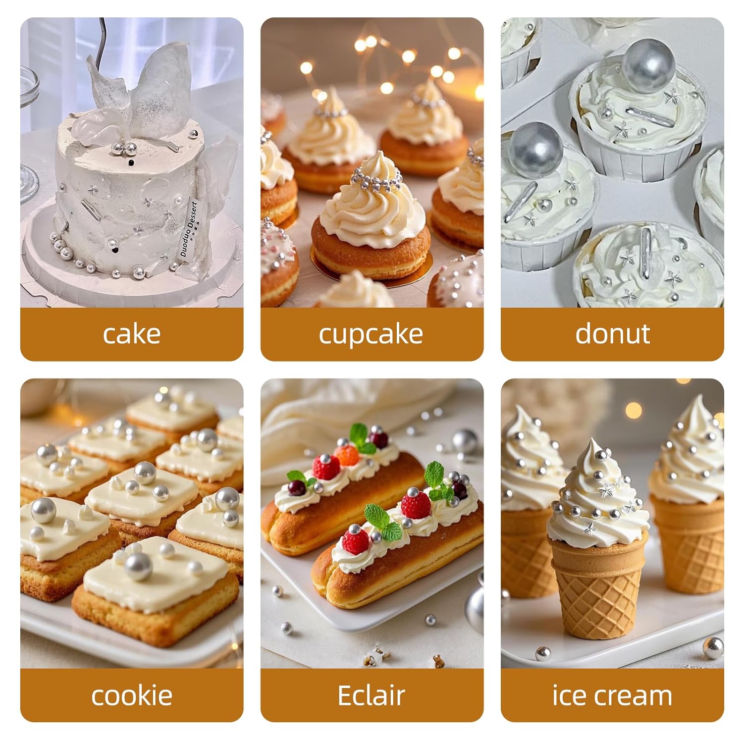 - Luxurious Silver Pearl Sprinkles: These bright silver pearl sugar sprinkles mixes are classy for wedding and birthday cakes,holiday baking and decoratingAnd you can also use them to embellish cookies, cupcakes, ice cream, fondant and pastries for added allure. Decorating your favorite baked dessert with our mixing-sized lustrous Silver Pearl Sprinkles will surely elevate your presentation,and more to add party fun