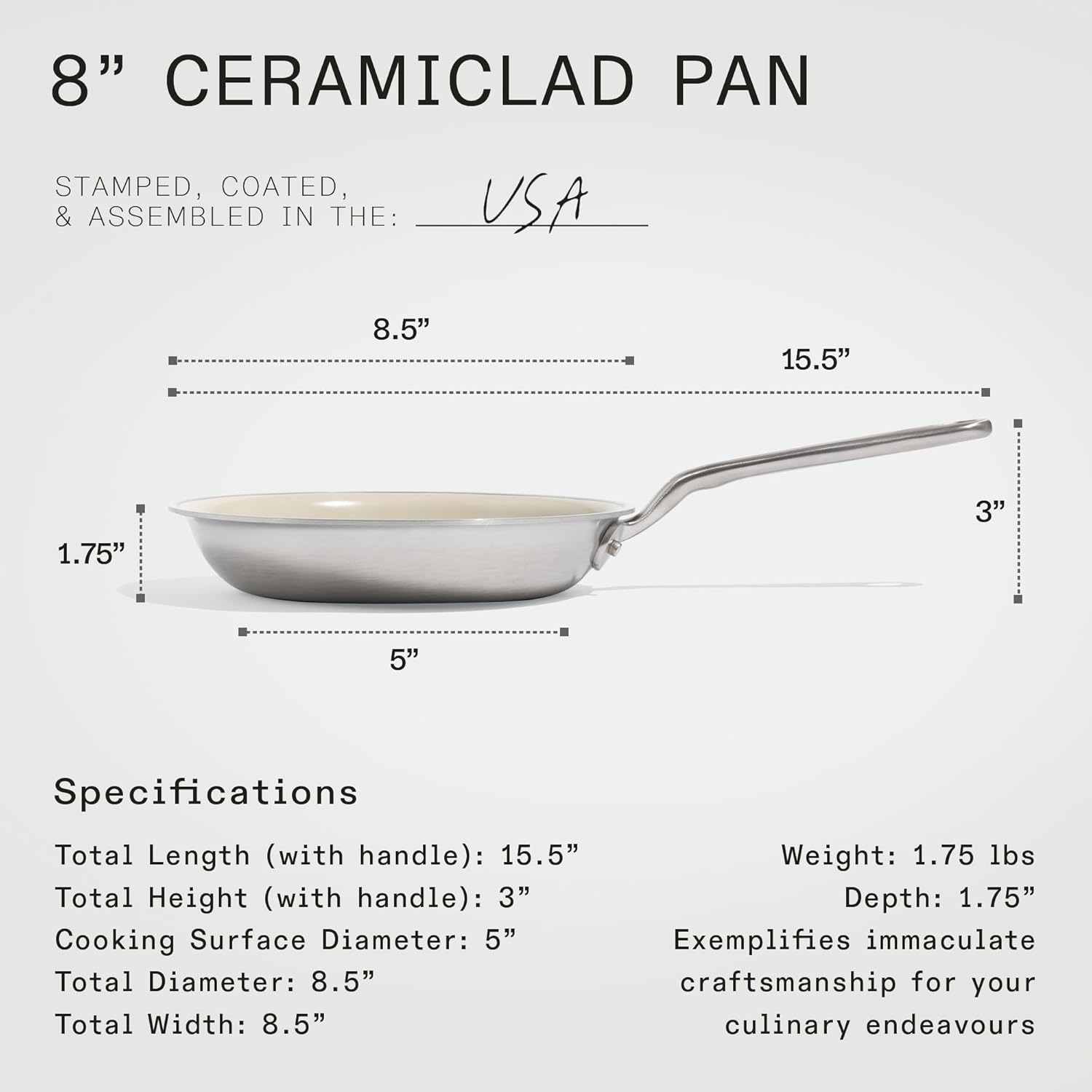 Made In Cookware - 3-Piece (Includes 8",10",12") Ceramic Non Stick Frying Pan Set (Stainless Handle) - 5-Ply Stainless Clad with Stay-Cool Handle - Professional Cookware