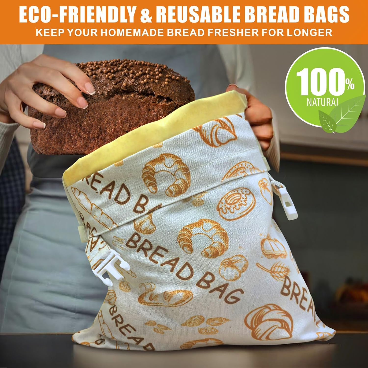 - KEEP YOUR BREAD FRESH : Our sourdough bread bags made of 100% cotton fabric, organic beeswax, natural Jojoba oil, and natural tree resin, creates a breathable barrier, sealing in moisture and maintaining the homemade goodness of your bread and baked goods. The sourdough bread storage bags helps ensure it retains its irresistible freshness for an extended duration.These reusable bread bags’ long-term freshness preservation function can prevent food waste.
