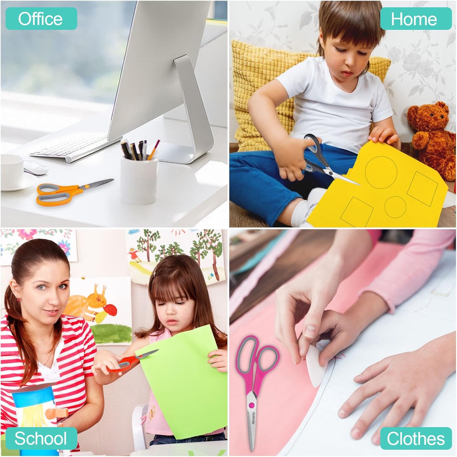 - Multipurpose/ Vibrant 24 Pack Scissors: Titanium. Different Colored Scissors, Can Be Used In Different Places. Ease to holding, work perfectly for their crafting for many different tasks. Comfortable to use in: Office, School, House Household, High/Middle School Students Teacher, Sewing Fabric Art Craft DIY, laundry room, bathroom, garage, kitchen or other occasions supplies.
