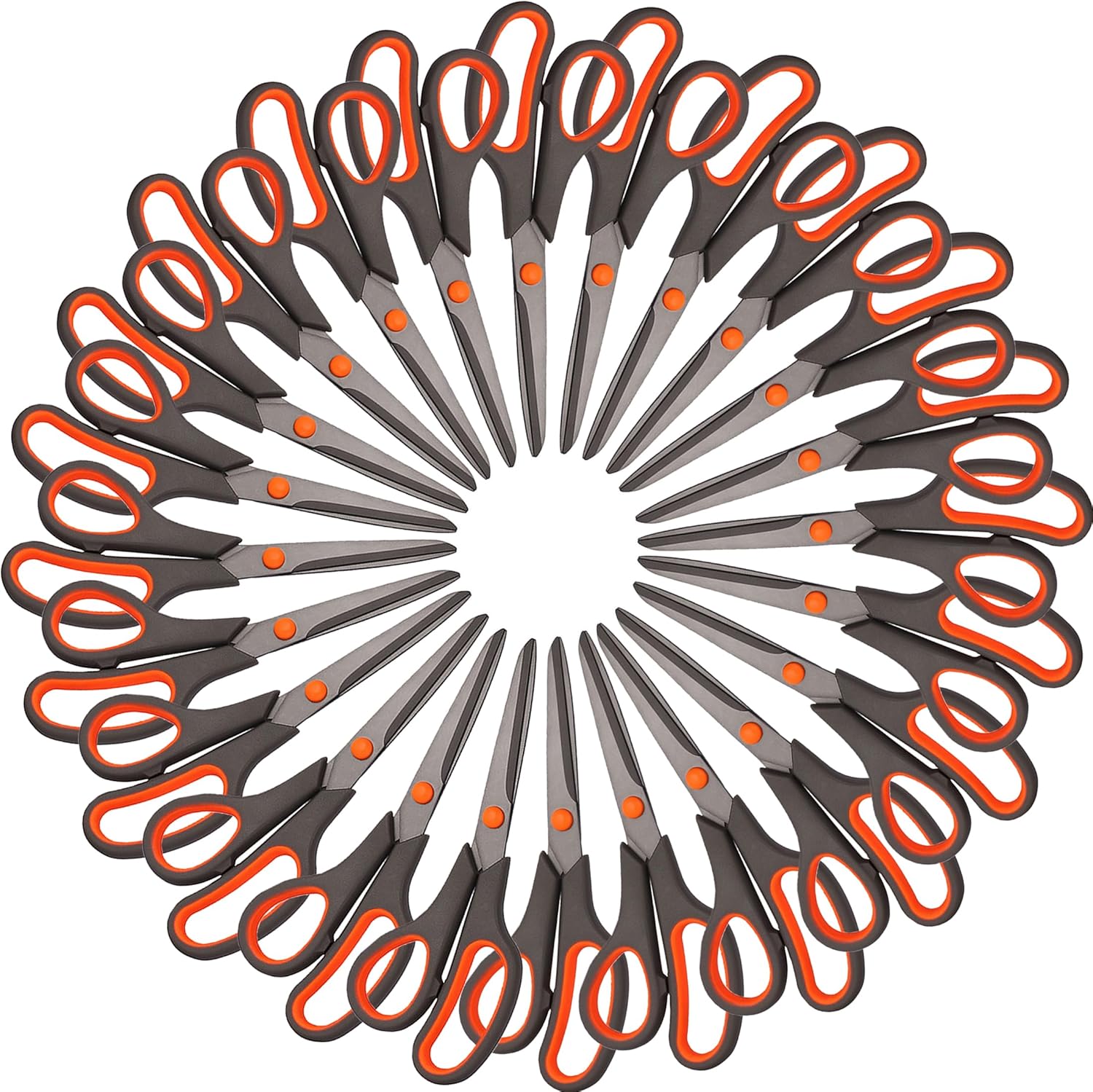 - Premium Quality Straight Handled Scissors Pack of 24: The scissors are ultra sharper and stainless steel blades enables high-density steel that makes 3 times harder than normal stainless steel and are smoother cutting. Allow you to make precise cuts with great control as the blade have the perfect amount of friction and very comfortable to use. Great for most regular home office desk classroom school teacher household tasks.
