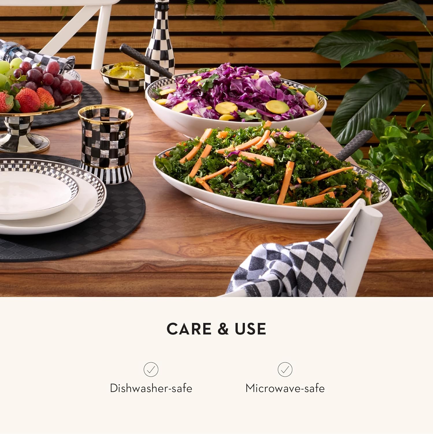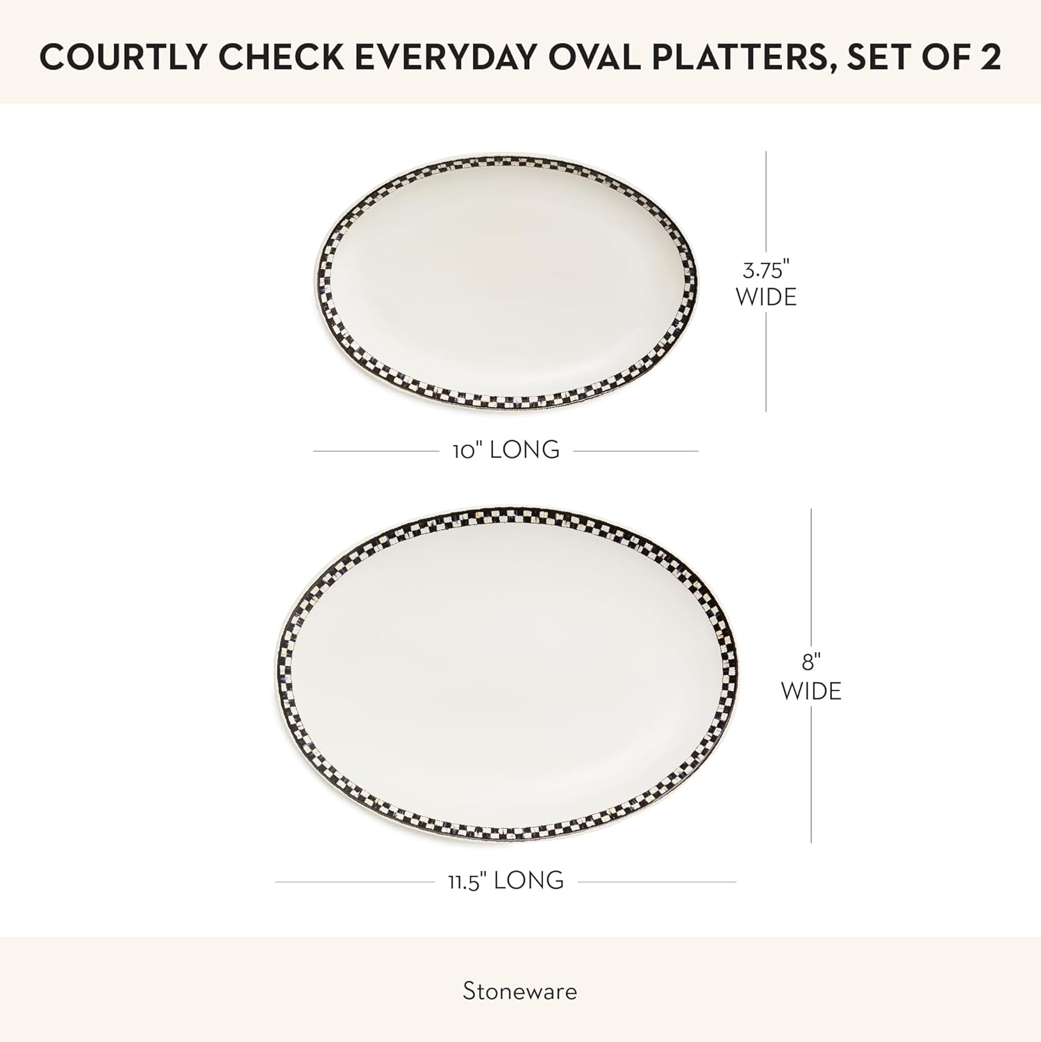 MACKENZIE-CHILDS Set of 2 Everyday Oval Platters, Dishwasher-Safe and Microwave-Safe, Black-and-White Courtly Check