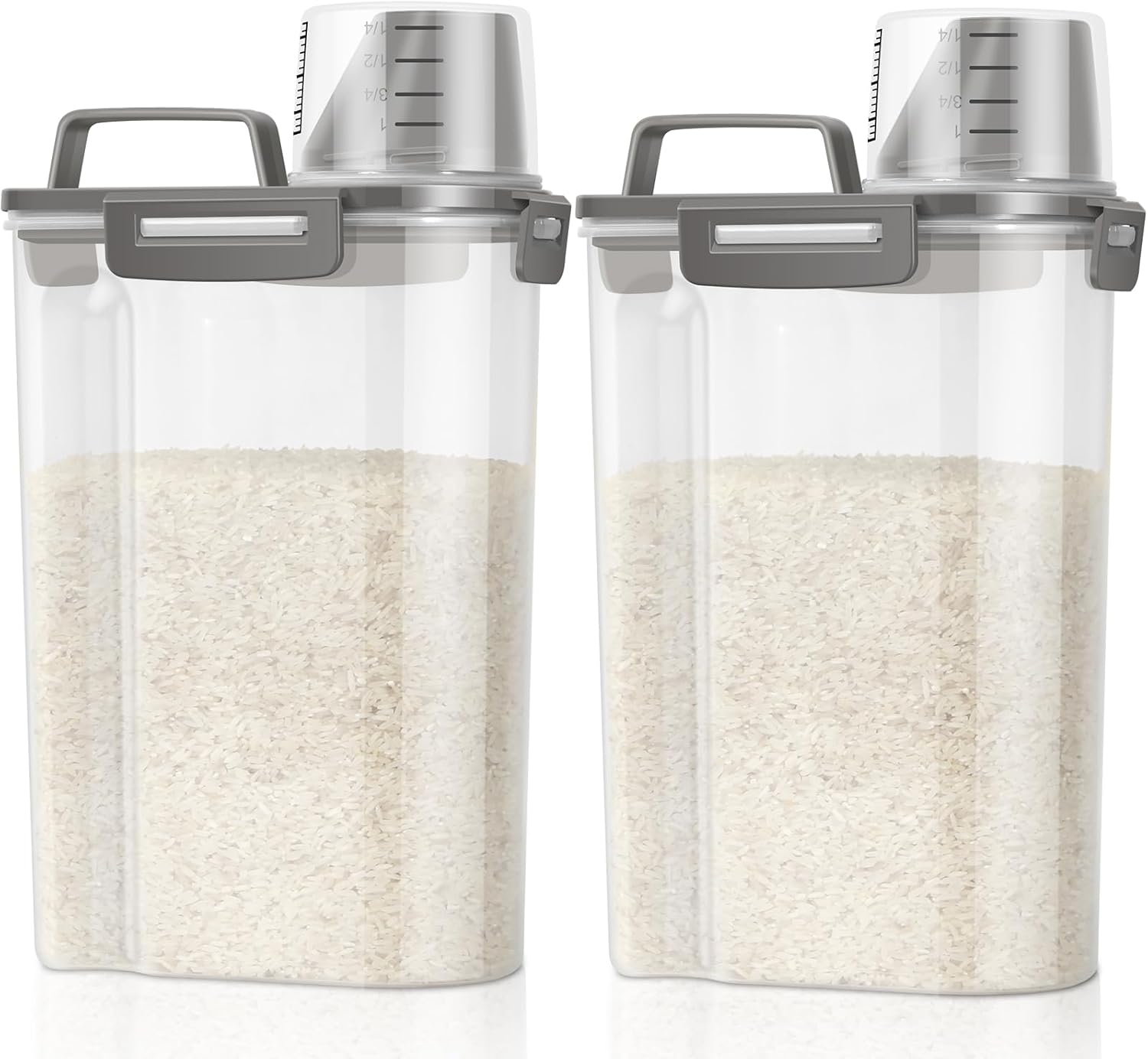 TBMax Rice Container Cereal Storage Container 2 Pack 5 Lbs, Kitchen Pantry Dry Food Storage Holder with Easy-Pouring Spout & Handy Cup, Small Pet Dog Cat Food Dispenser for Daily Feeding -Grey