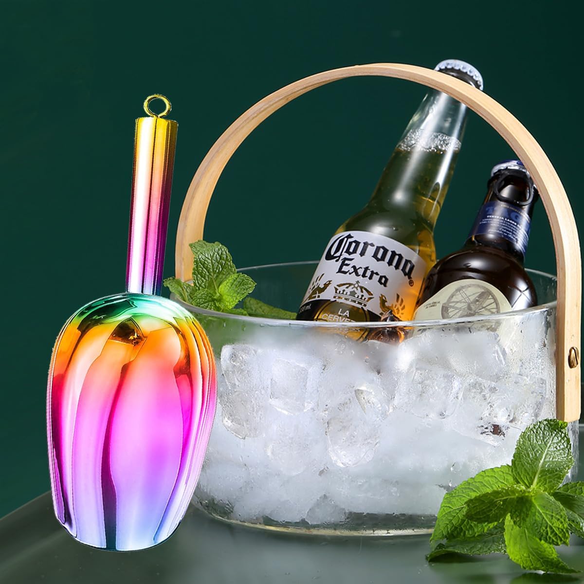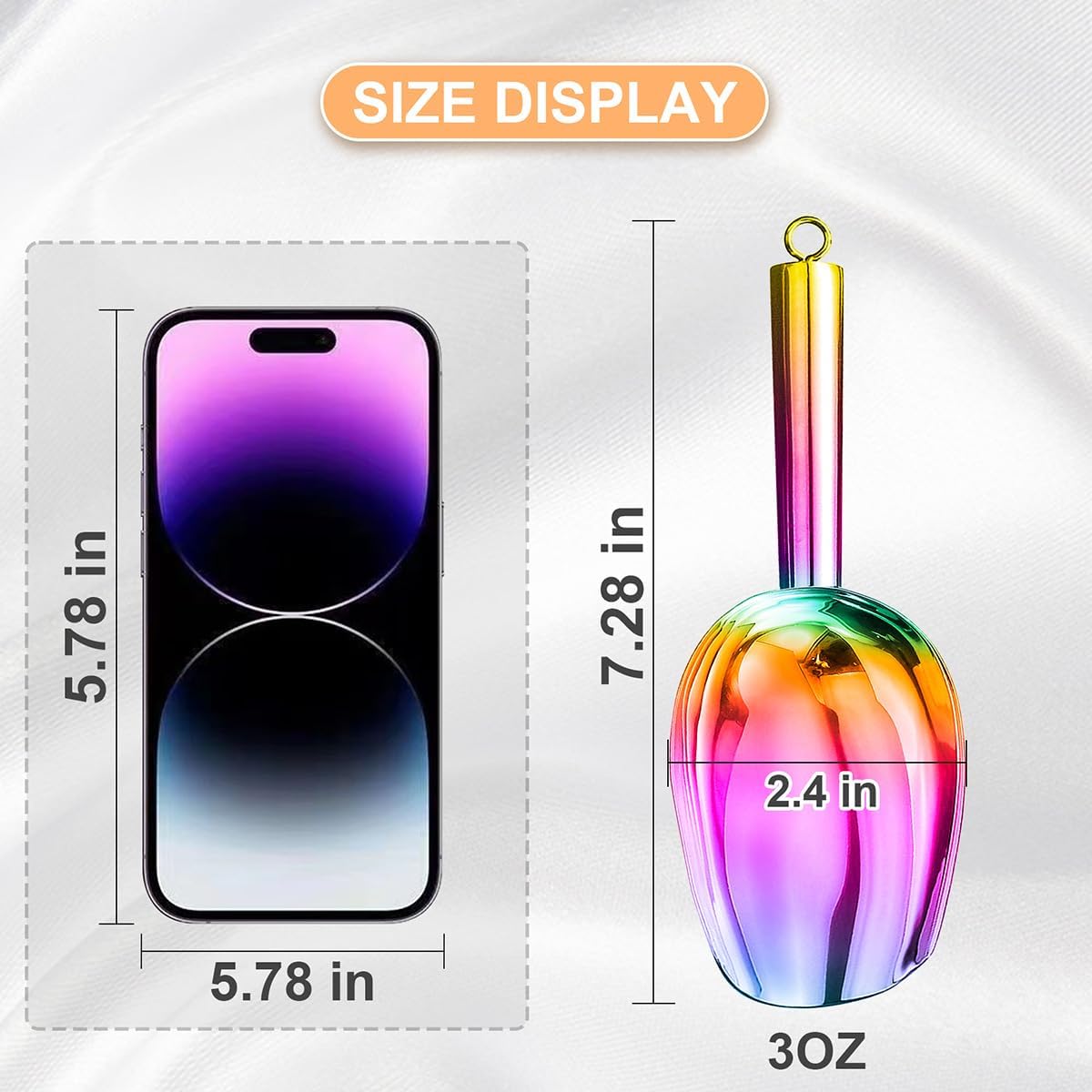 Metal Ice Scoop,Kitchen Ice Scooper for Ice Maker,Stainless Steel Small Ice Scooper for Freezer,Kitchen Gadgets Cookie Flour Pet Dog Food Scoop (Rainbow, 3oz)