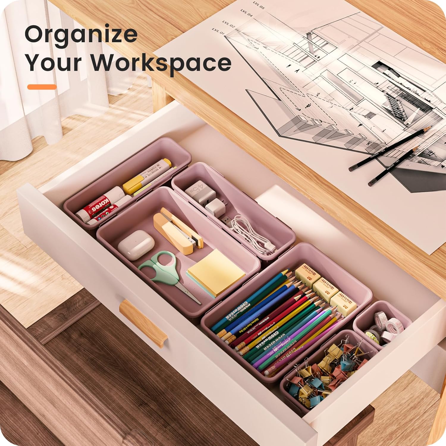 - 【Easy to Clean】 ---- Our desk drawer storage bins are easy to wipe with a damp cloth and are perfect for keeping everything in its place. Convenient for use in your daily life, it makes everything look beautiful and better organized.