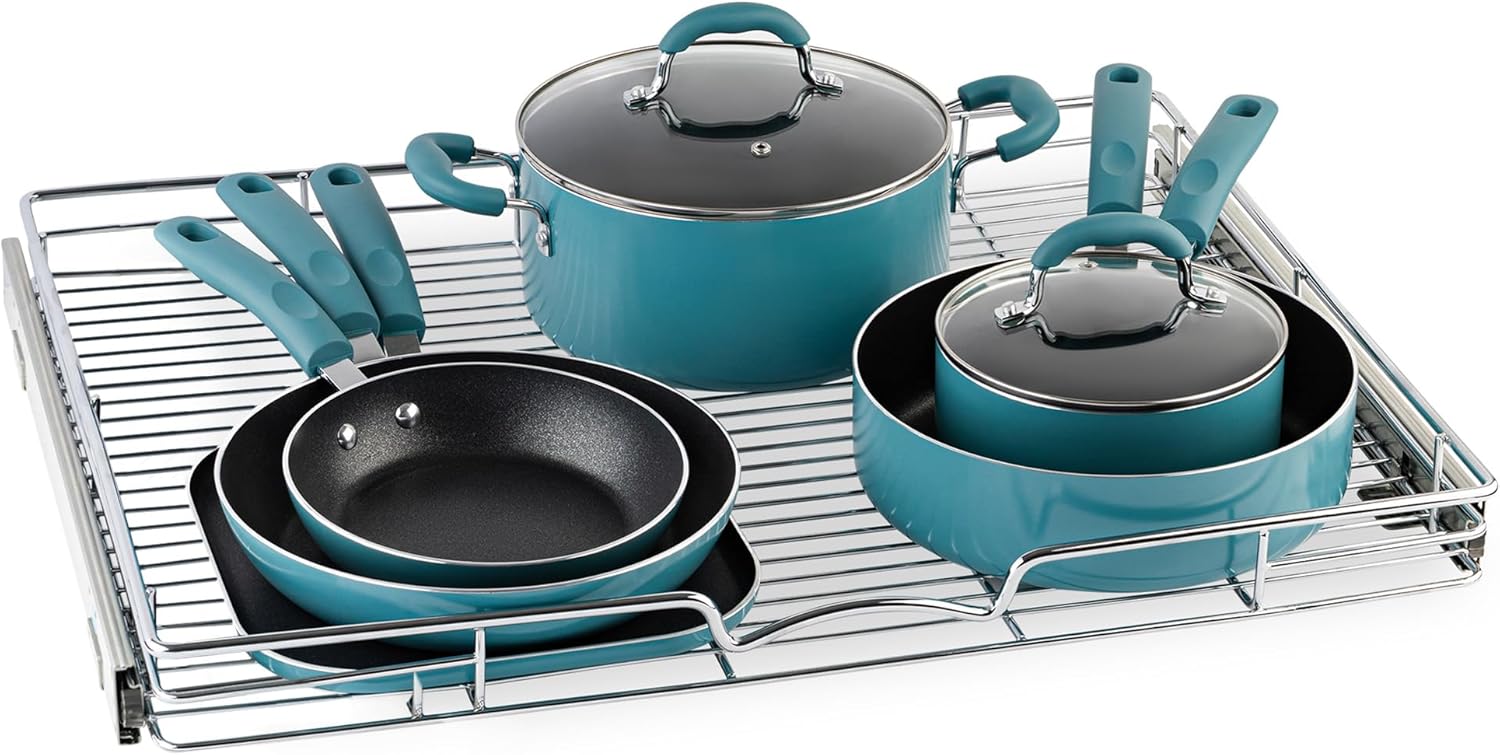 - SMOOTH SLIDE-OUT DRAWER: This kitchen cabinet roll out shelf is manufactured with a pull out system that slides out ultra-smooth. Other than other drawer organizers, our Pull Out Cabinet shelf slides out all the way, providing you with easy access.