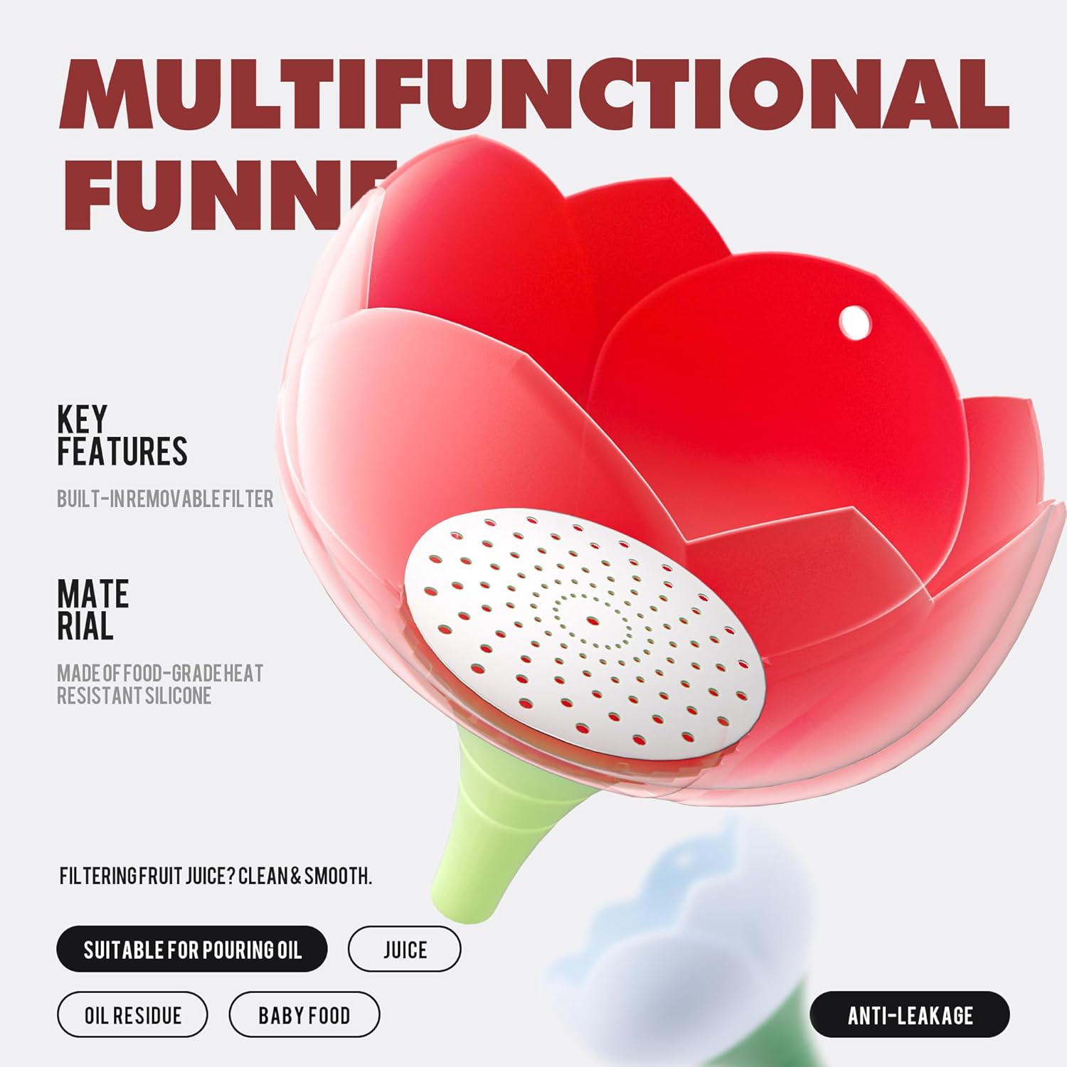 - Wide Application: The silicone funnels are very suitable for transferring liquids, powders, granules, etc. It is suitable for almost any container. It is a good gift for friends, family, housewives, and is suitable for kitchen, home, party and other occasions