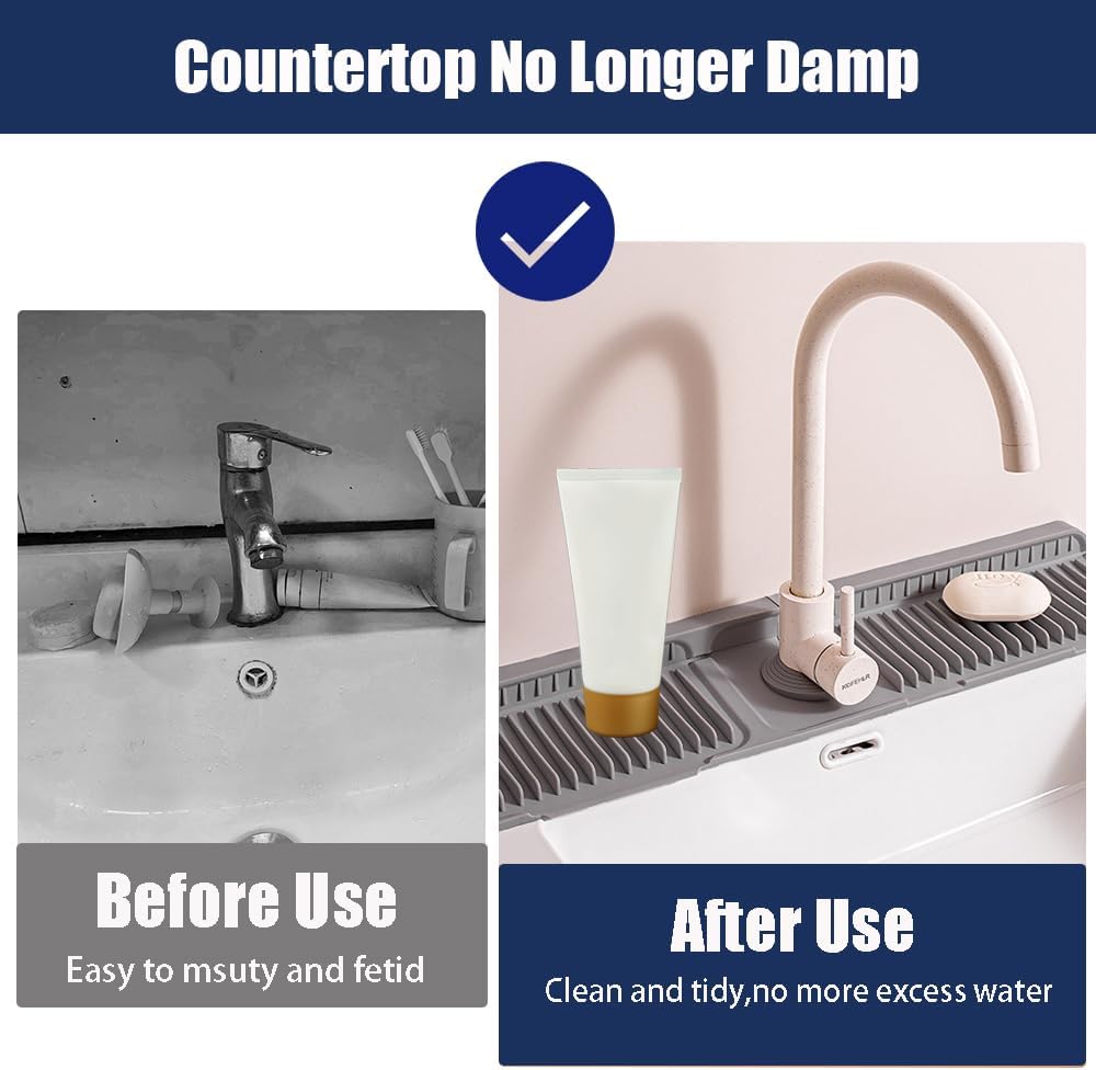 - Silicone Material & Easy to Clean:Our kitchen faucet mat is made from food-grade silicone,soft,durable and reusable.It has a non-slip surface and reinforced backing, providing stability and support for heavier items.Easy to clean: you can wash it by hand or put it in the dishwasher